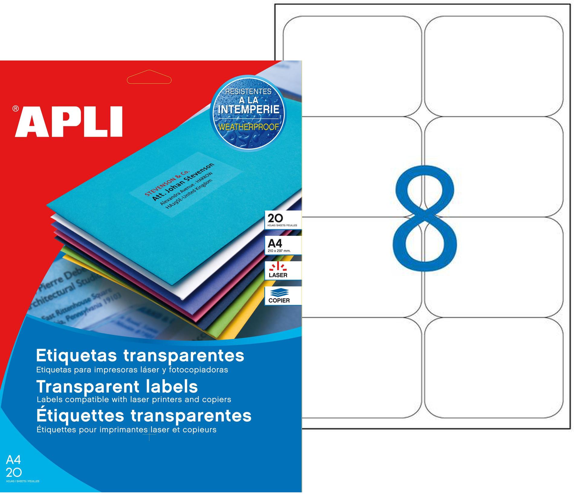 Étiquettes polyester transparente laser / Copieur 99,1x 67,7 mm 20 feuilles