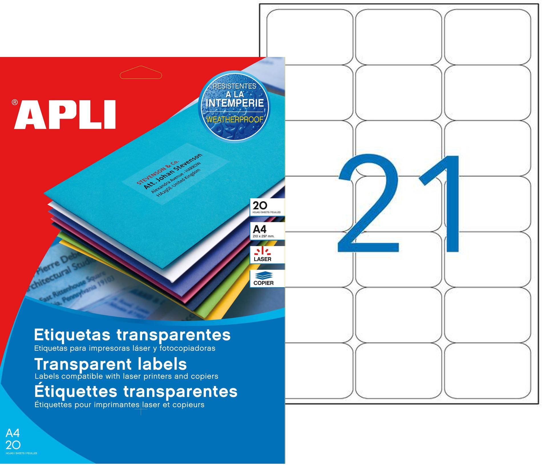 Étiquettes polyester transparente laser / Copieur 63,5x 38,1 mm 20 feuilles
