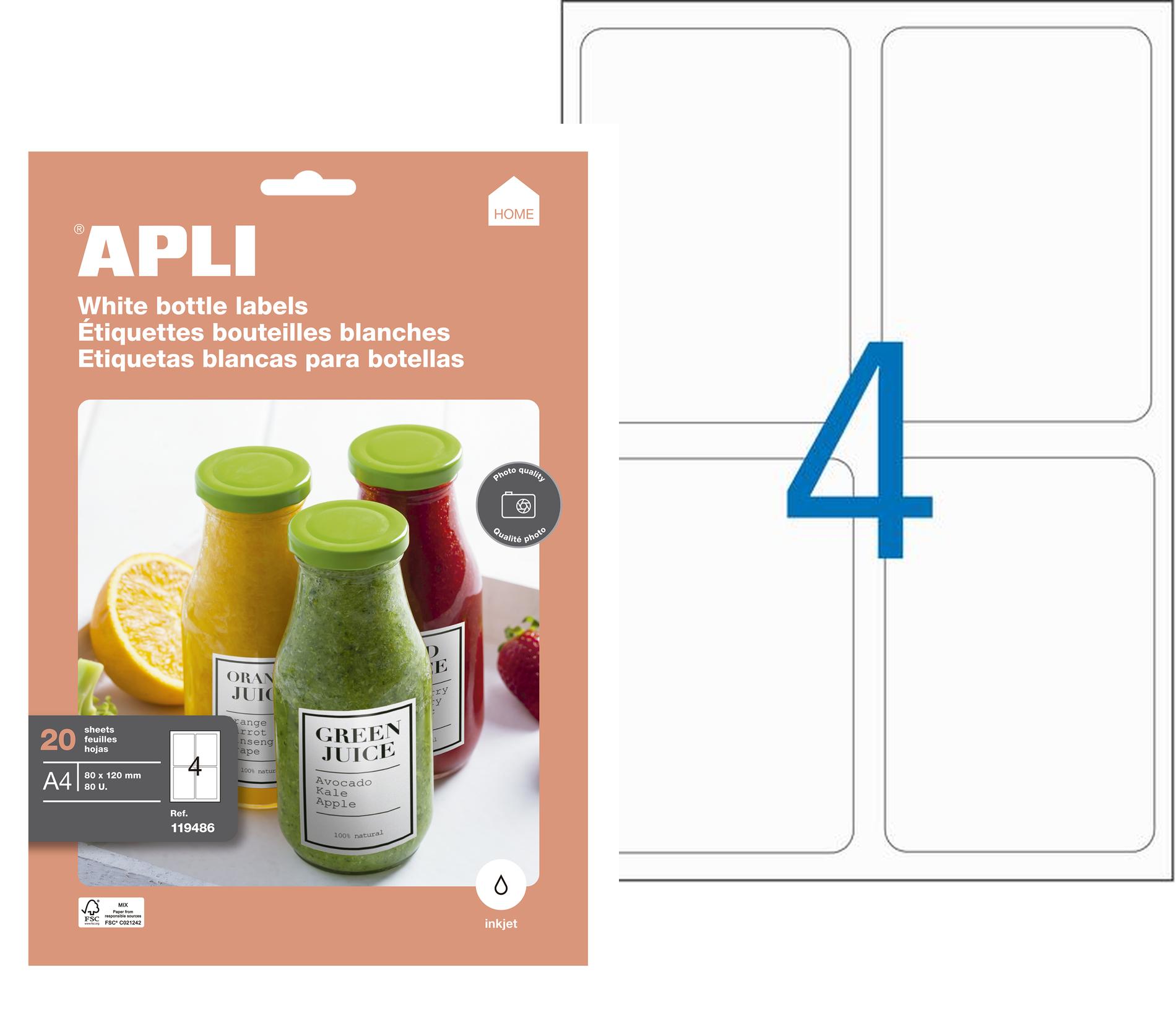 Pochette de 20 feuilles A4 jet d'encre. Étiquettes adhésives qualité photo.