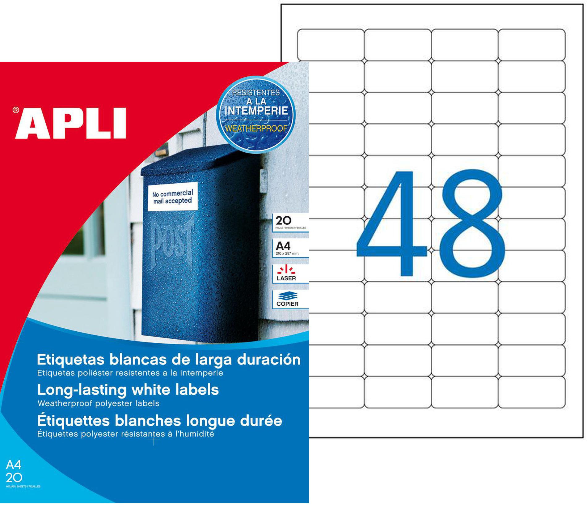 Etiquettes blanches en polyester avec une finition mate résistantes aux intempéries et à la corrosion ambiante. Les étiquettes en polyester résistent aux conditions extrêmes, aux températures comprises entre -20°C et +100°C. Idéal pour marquer les éléments et pour la signalisation extérieure ainsi que pour les envois par courrier. Excellente qualité d’impression aux imprimantes laser ou photocopieuses.