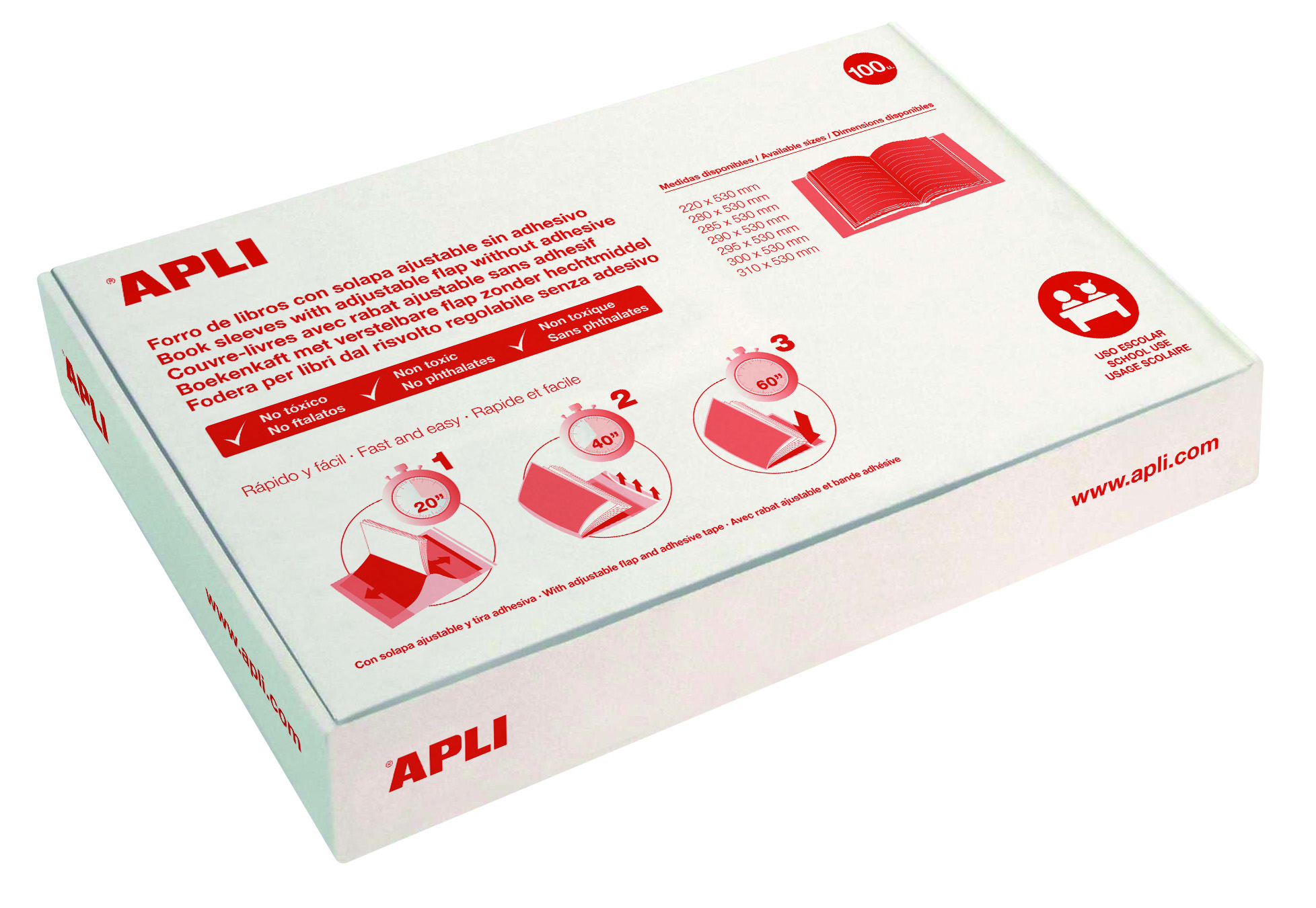 Couvre-livres transparents en PVC de 130 micromètres d’épaisseur et 280 mm avec rabat auto-ajustable. Chaque boîte contient 100 couvre-livres.