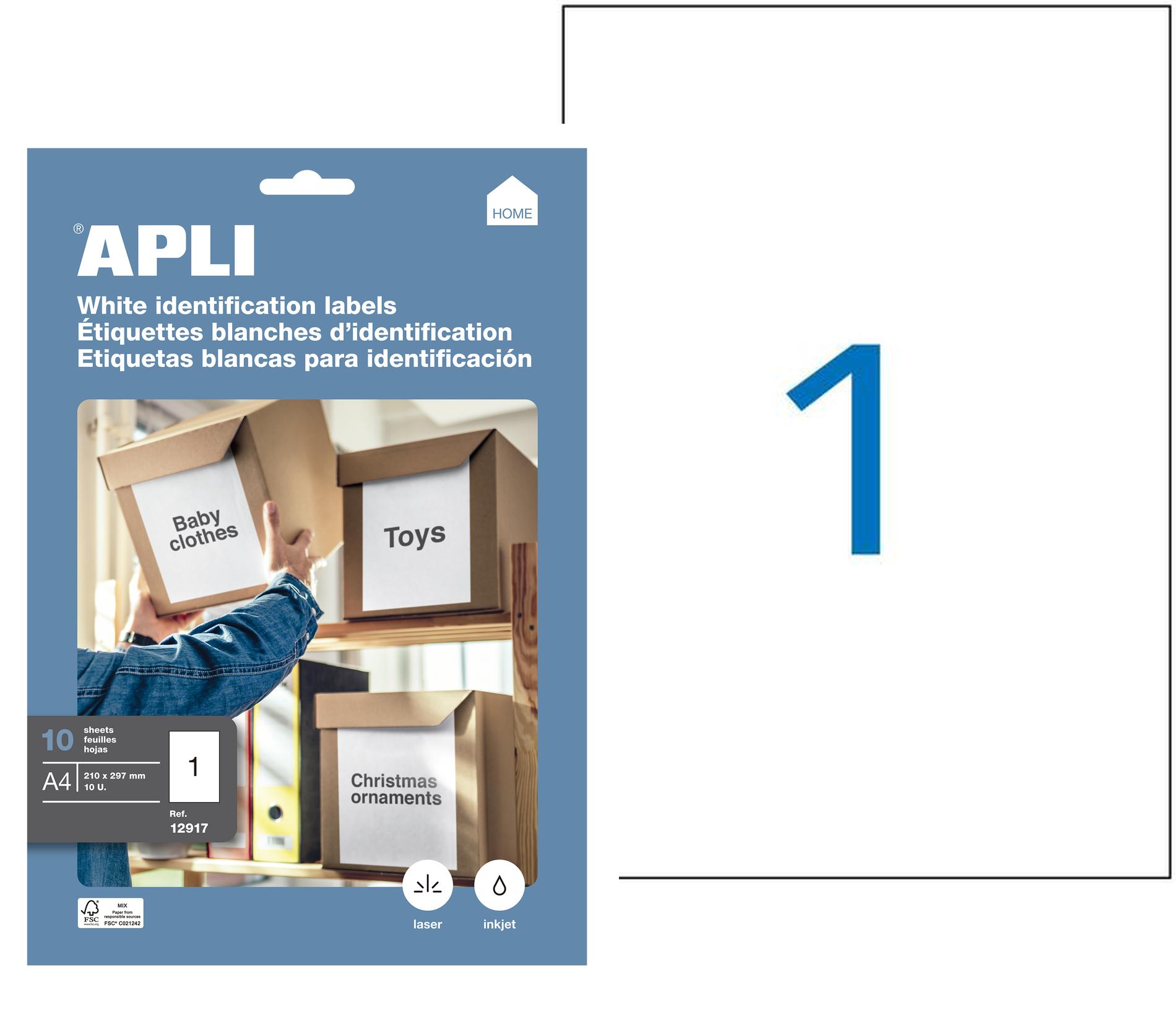 Étiquettes blanches permanentes 210,0 x 297,0 mm 10 feuilles