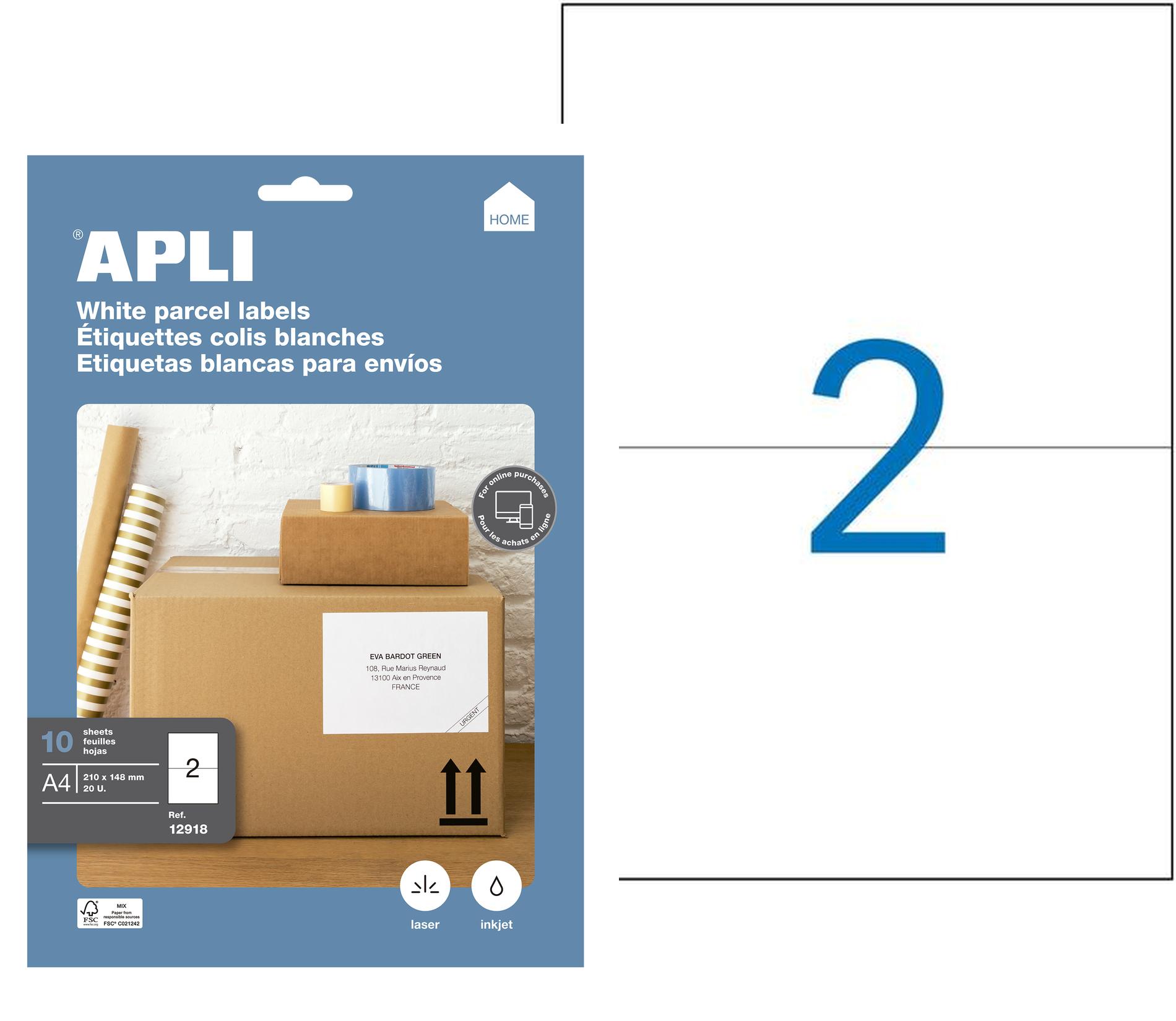 Étiquettes blanches permanentes 210,0 x 148,0 mm 10 feuilles