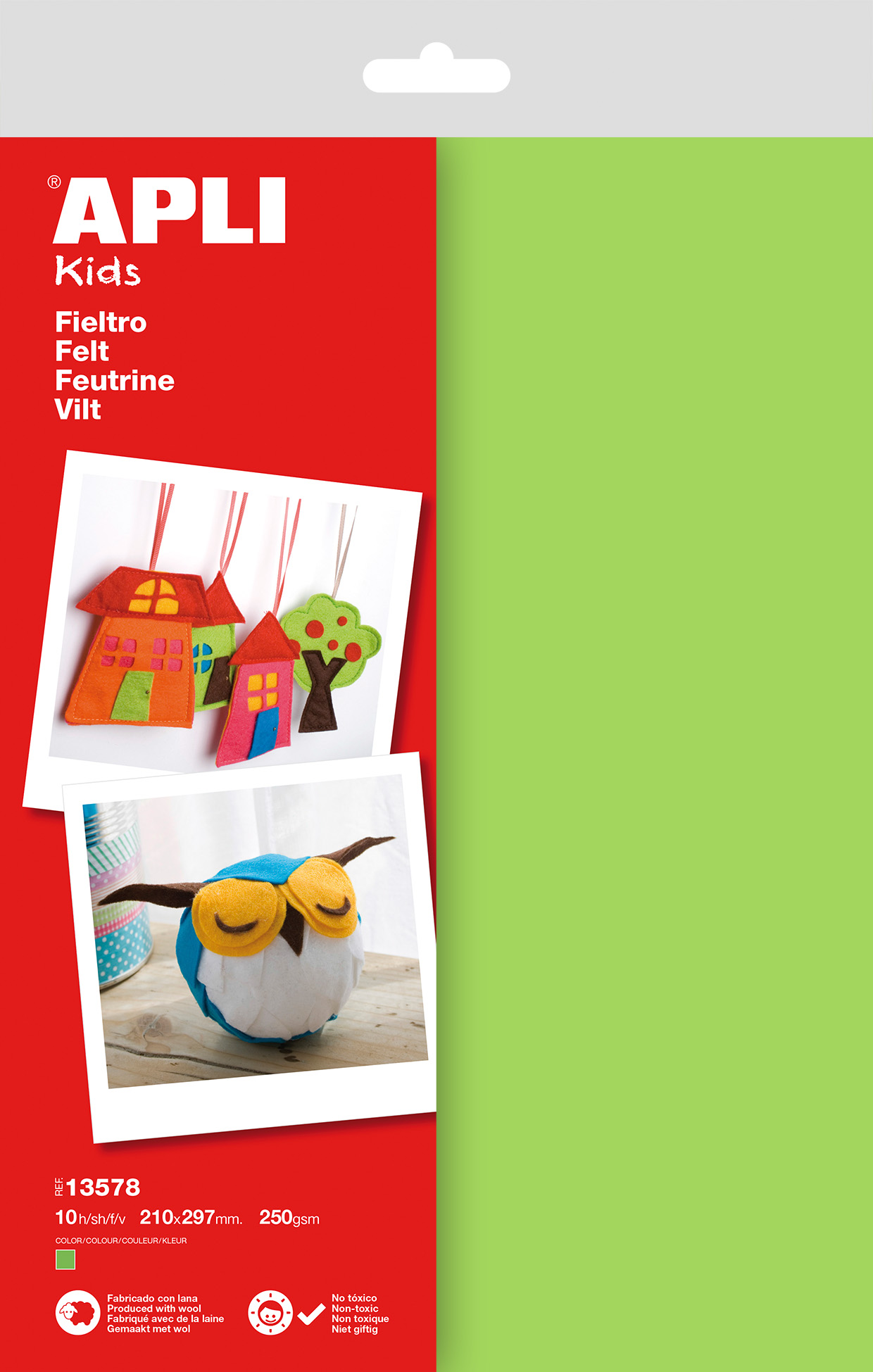 Les feuilles de feutrine APLI contiennent 40 % de laine naturelle et ont une épaisseur de 250 g/m2, de sorte qu’elles sont plus résistantes, douces et souples. Faciles à marquer au feutre, à découper et à coller.