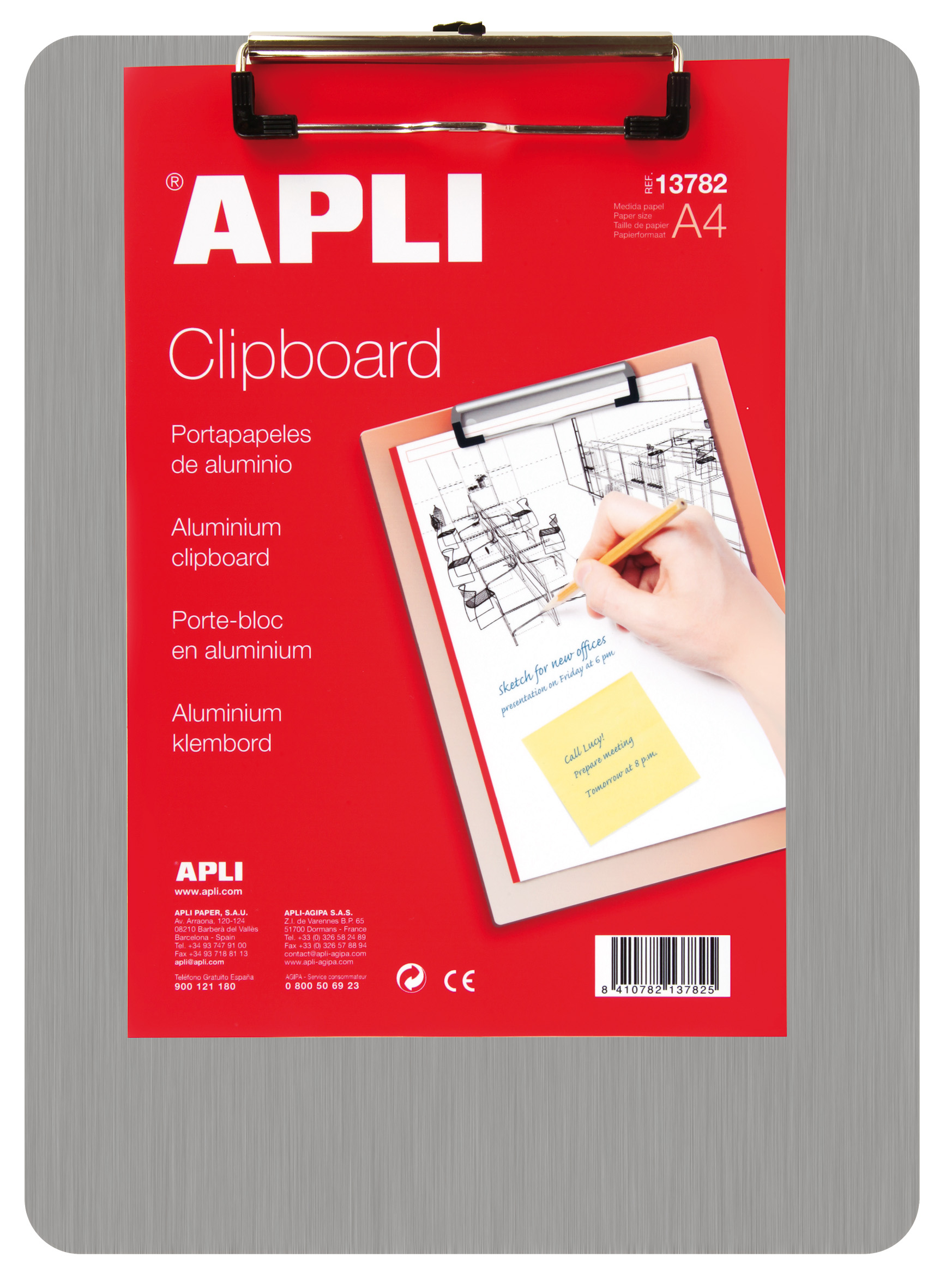 Porte-bloc rigide en aluminium de dimensions 230 x 320 mm. Convient pour des papiers format A4 et folio. Inclut un clip au niveau de la partie supérieure qui aide à maintenir fermement le papier pour une meilleure écriture. Panneau résistant aux griffures et à la longue durée de vie.