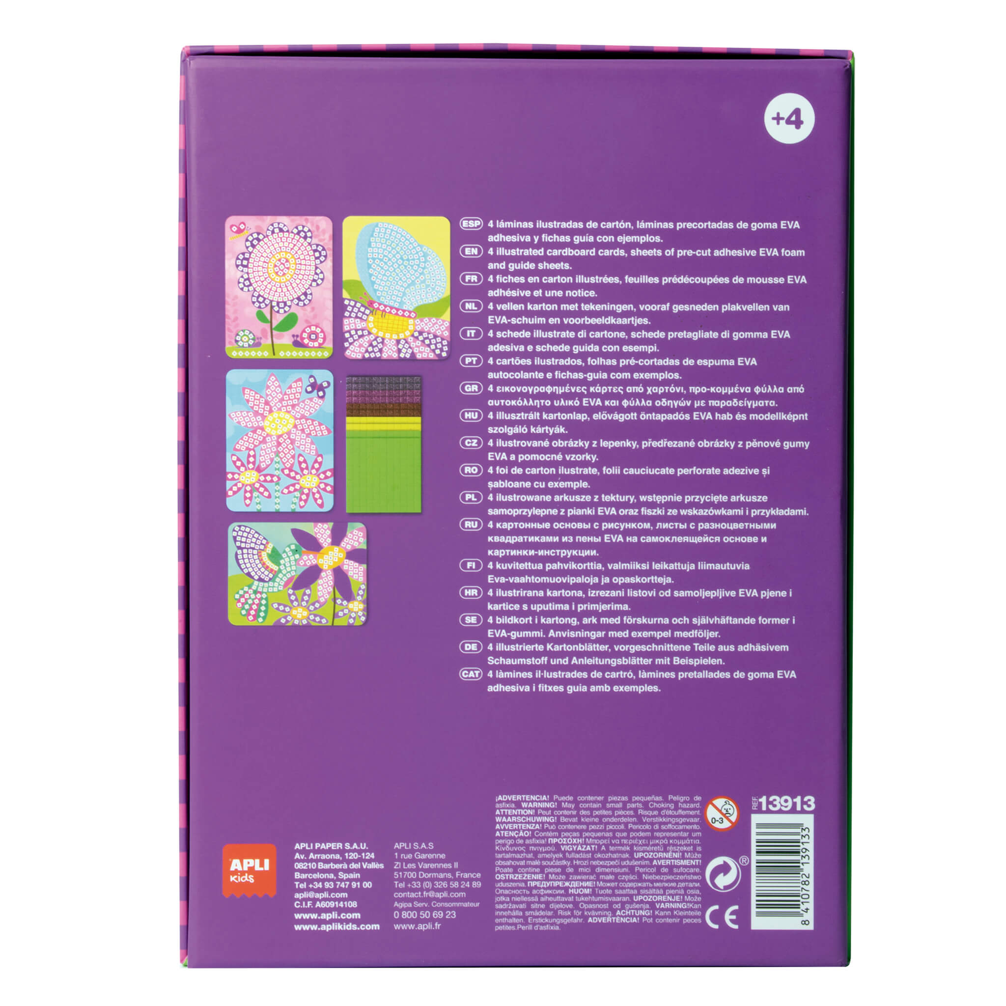 Jeu pour réaliser des mosaïques avec de la mousse EVA adhésive prédécoupée de différentes couleurs et finitions. Modèle Le Printemps.