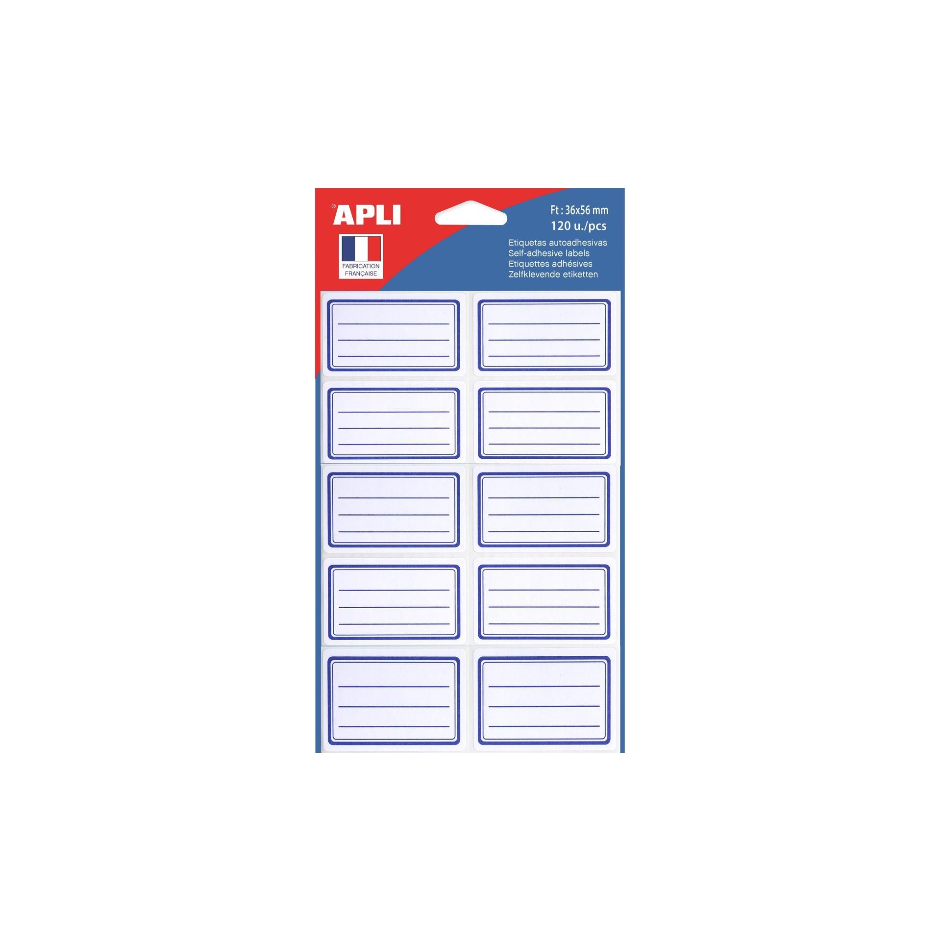 Pochette de 120 étiquettes scolaires cadres et lignes bleus.