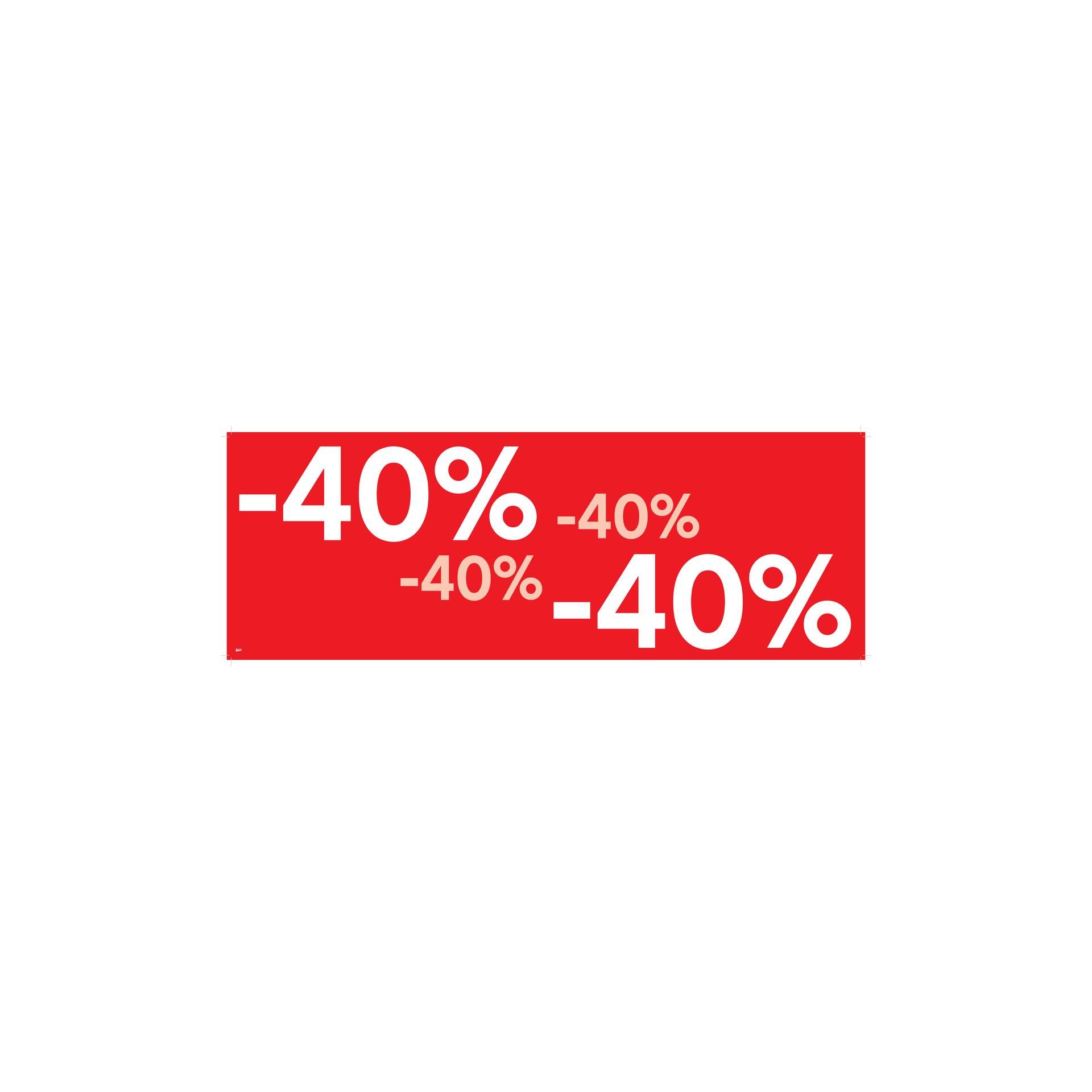 Affiche - 40 % impression blanc sur fond rouge. Répétition du mot en continu. Affiche horizontale. Idéale pour annoncer vos soldes et inviter les clients à entrer dans votre boutique.