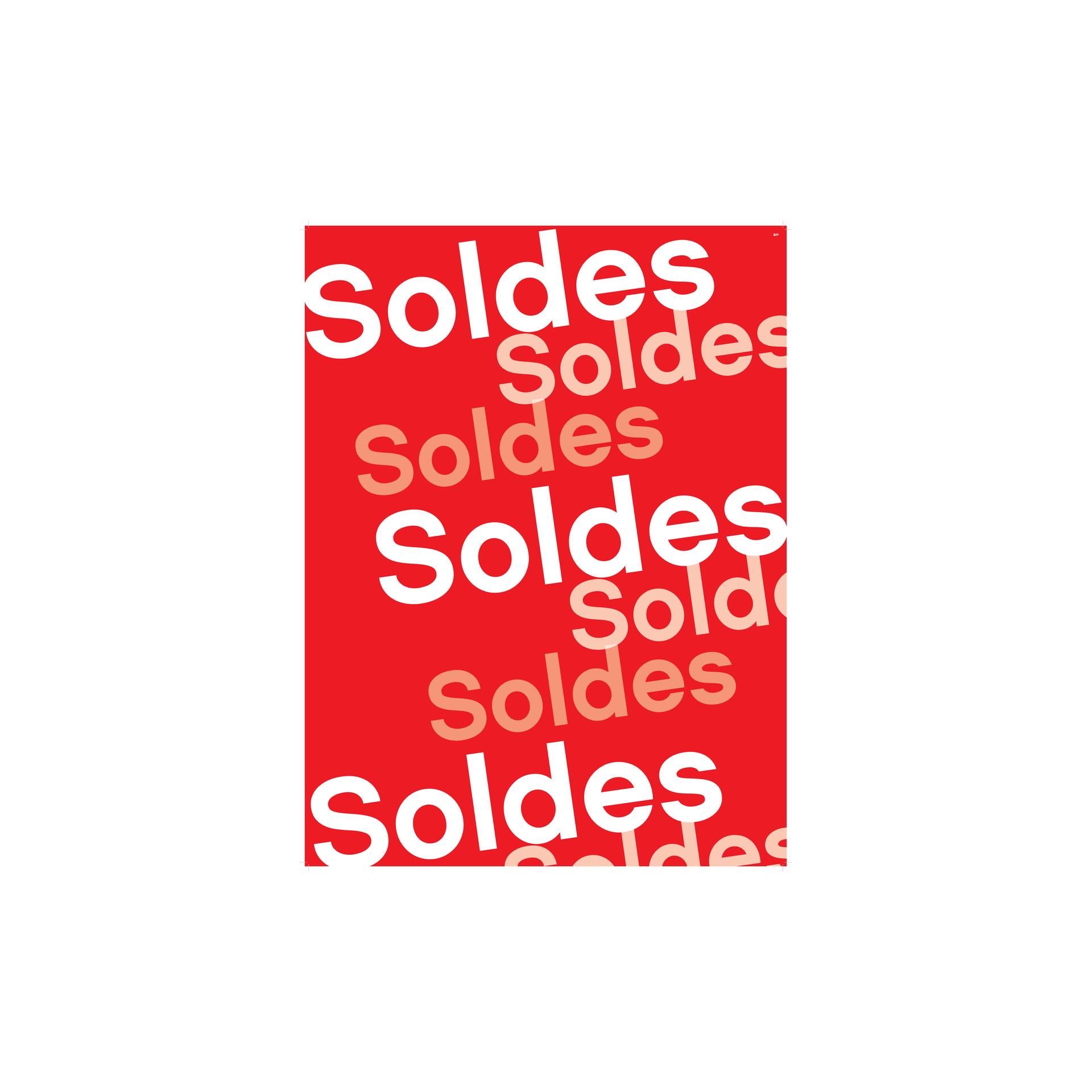 Affiche rouge/impression blanche "Soldes" 60x80 cm 12 u.