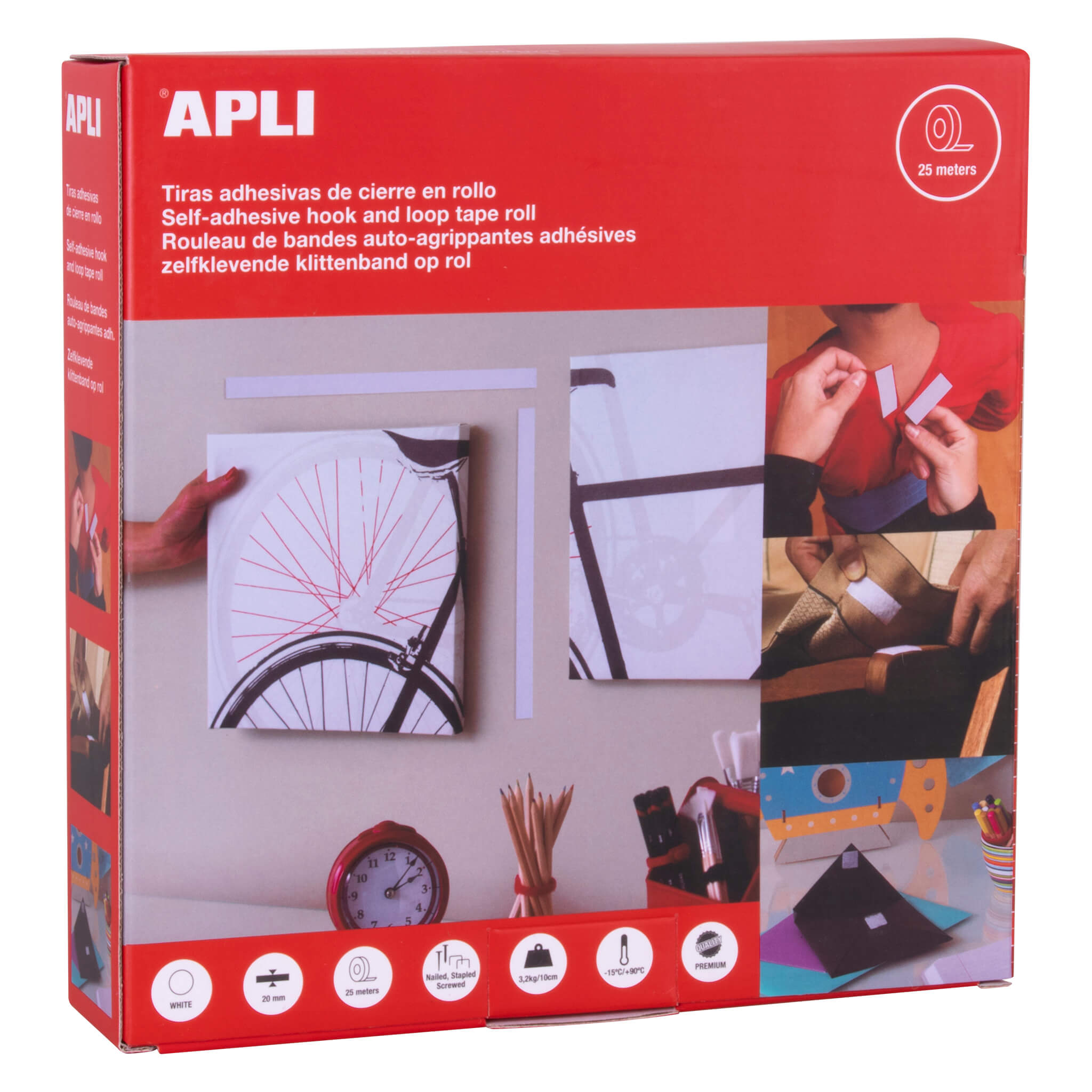 Dévidoir de 25 m de bande agrippante auto-adhésive blanche de 20 mm de large. Points de fermeture par filaments également connu sur le marché comme fermeture velcro. Permet de garder tous les objets au même endroit et d’ouvrir puis fermer plusieurs fois sans altérer la qualité de la fermeture. Fermeture résistante jusqu'à 10 kilos. Adhésif acrylique de grande qualité permettant une forte adhésion. Une alternative intelligente et durable comparée à d’autres moyens traditionnels de fixation, sans besoin de percer, d’utiliser des clous ou coudre. Il suffit de coller les deux objets à l’aide d’un bout de bande adhésive, de façon à ce que l’un des objets ait la partie rugueuse à l’extérieur et l’autre ait la partie de velours à l’extérieur. Parfaites pour le rangement d’outils, pour unir des câbles et les travaux manuels, retouches de couture, déguisements etc.
