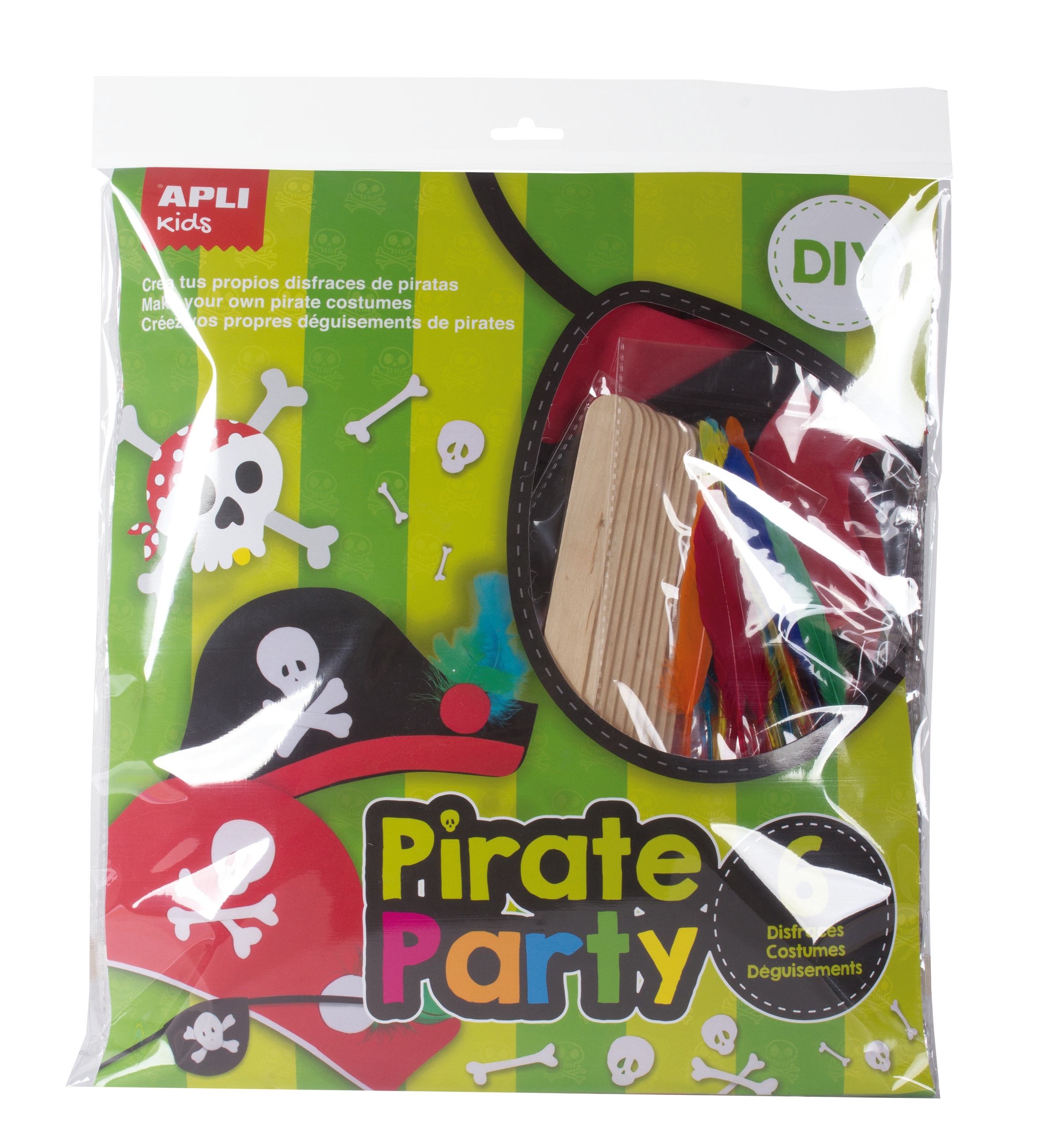 Kit complet pour 6 déguisements Pirate. Chaque pack contient tout le matériel nécessaire pour créer 6 déguisements. Idéal pour les fêtes d'anniversaire.