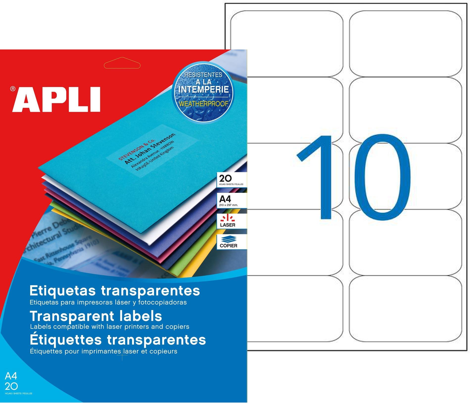 Étiquettes polyester transparente laser / Copieur 96x 50,8 mm 20 feuilles