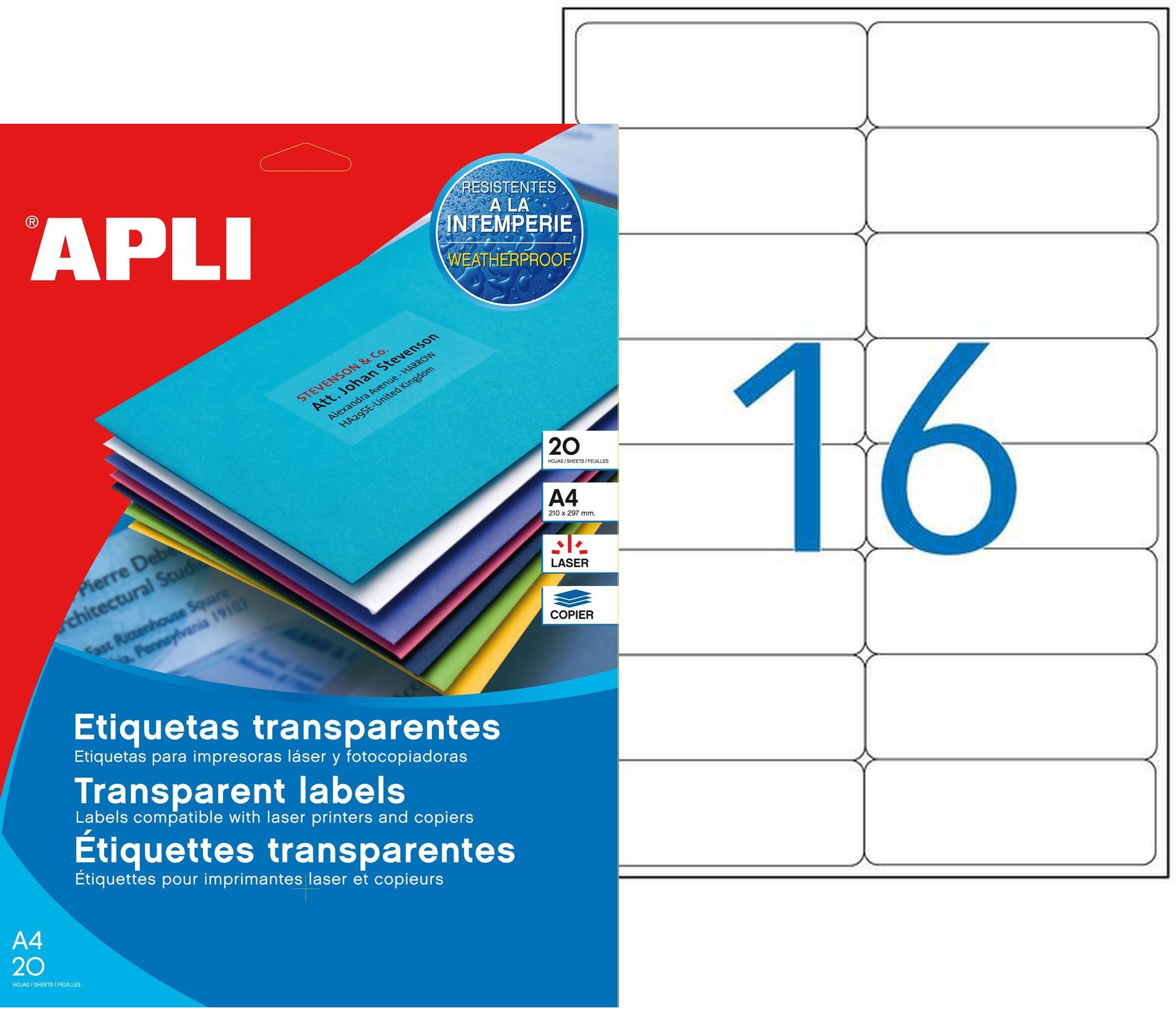 Étiquettes polyester transparente laser / Copieur 99,1x 34 mm 20 feuilles