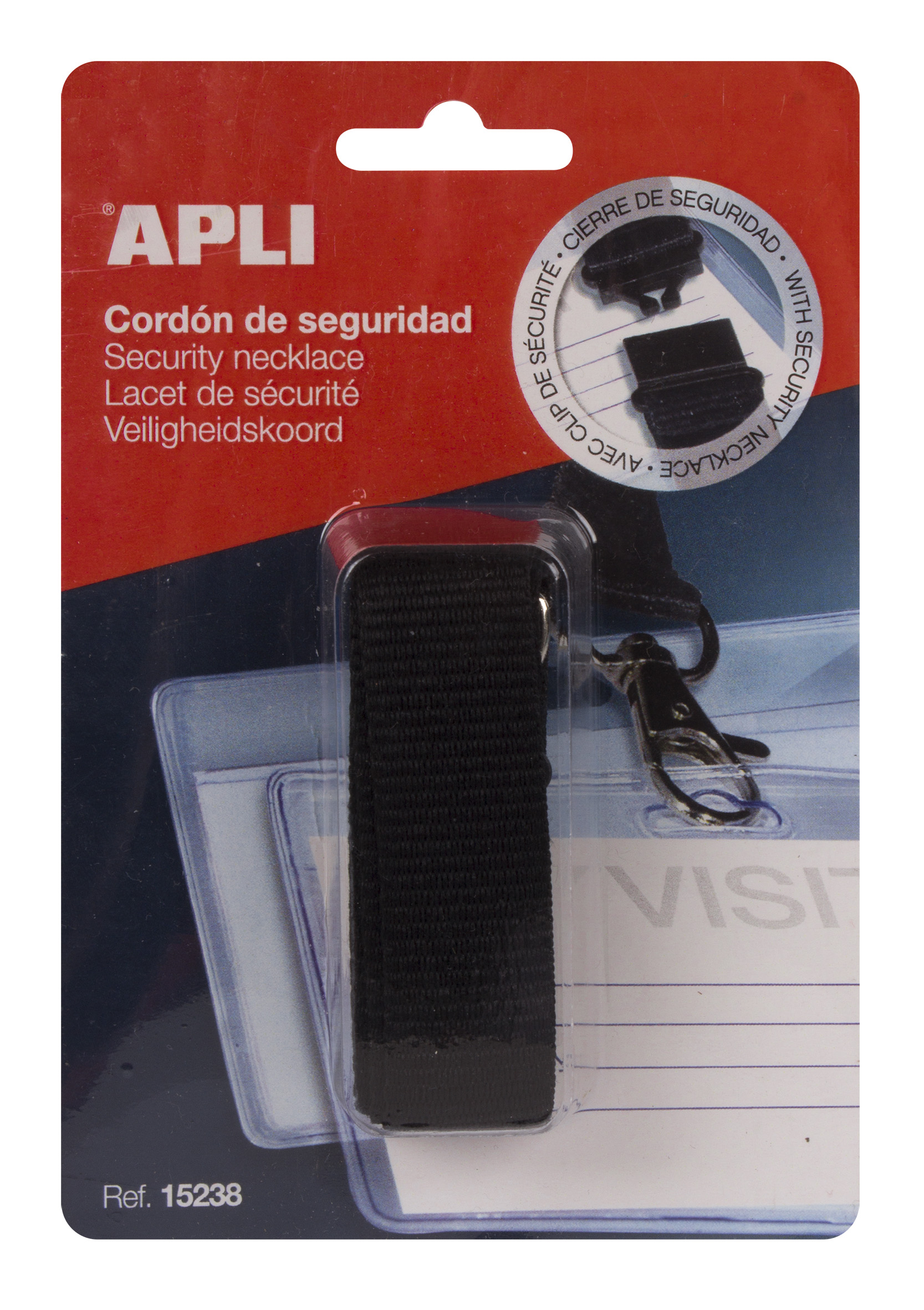 Cordon de sécurité pour badge en coloris noir. Le cordon dispose d’une pince à son extrémité et d’un système de sécurité anti-étranglement. Cordon au toucher doux et agréable, très confortable et résistant. Idéal pour usage dans des bureaux, écoles, manifestations, réserves, usines etc. Pour le personnel sanitaire, de sécurité, techniciens de laboratoire, pour s’identifier lors de congrès, passages d’accès à des manifestations et autres événements etc.