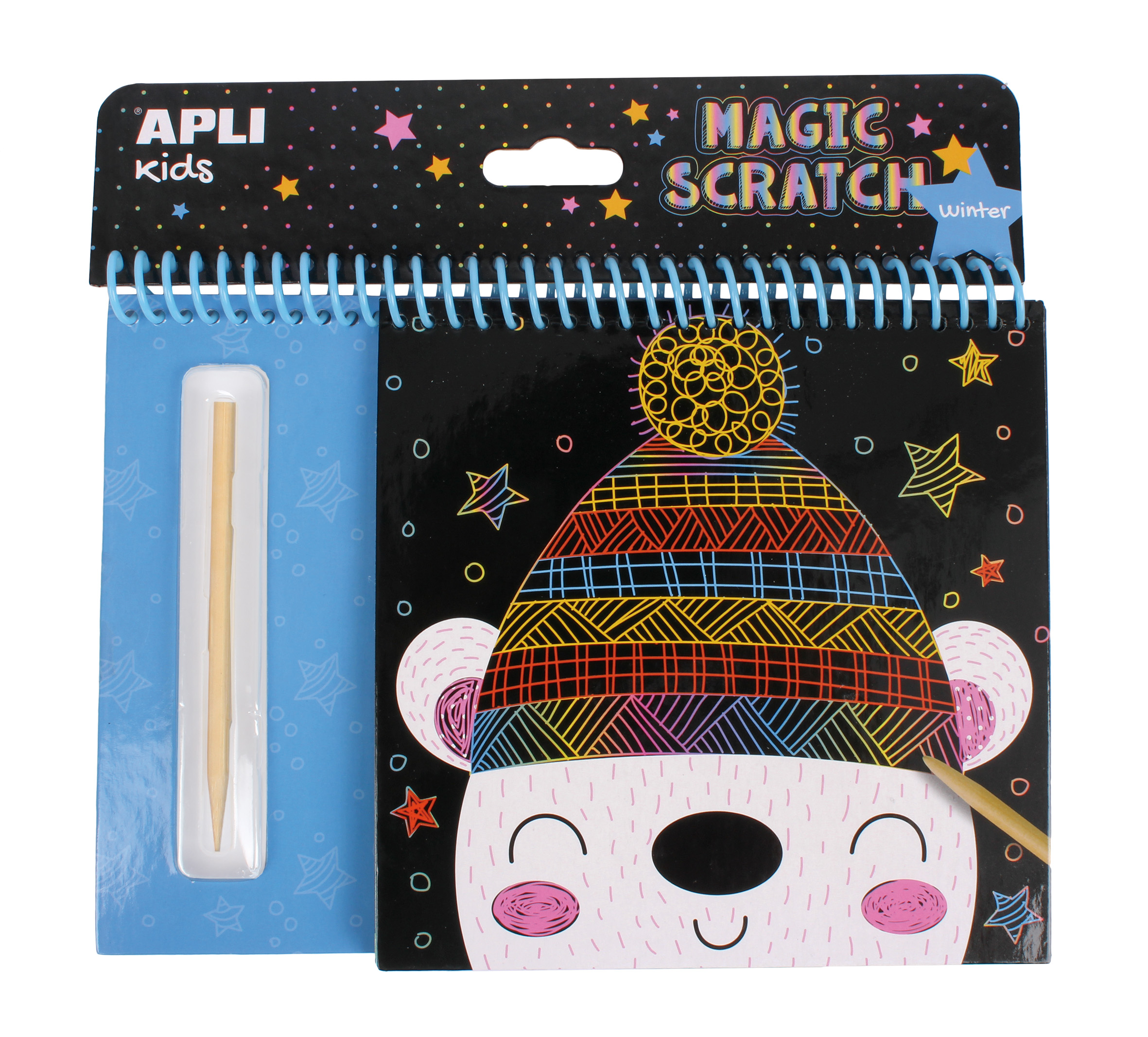 Bloc de cartes à gratter modèle Hiver. Chaque bloc contient 8 cartes et un crayon en bois pour gratter. Jeu facile et amusant : il suffit de gratter les dessins des cartes avec le crayon en bois et de découvrir les couleurs cachées en dessous. Chaque dessin comporte un design de base, mais l'enfant peut dessiner des lignes et motifs différents. Jeu idéal à emporter en voyage. Jeu à haute valeur didactique : il stimule la créativité et aide à renforcer la confiance et l'estime de soi ainsi que la précision, la dextérité et la concentration. Recommandé pour les enfants à partir de 3 ans.