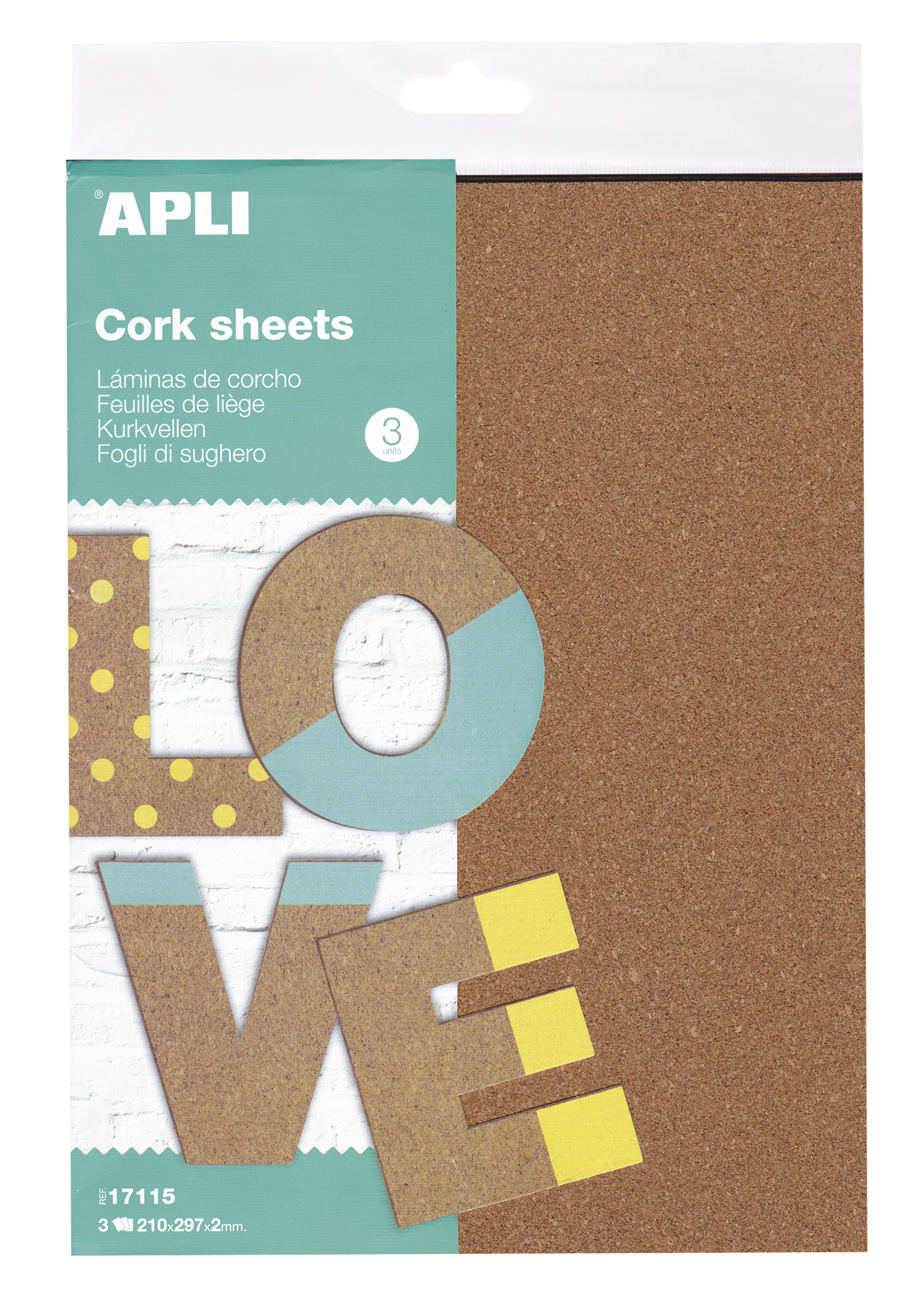 Pochette de feuille en liège format A4 (210 x 297 mm) de 2 mm d’épaisseur. Chaque paquet contient 3 feuilles.