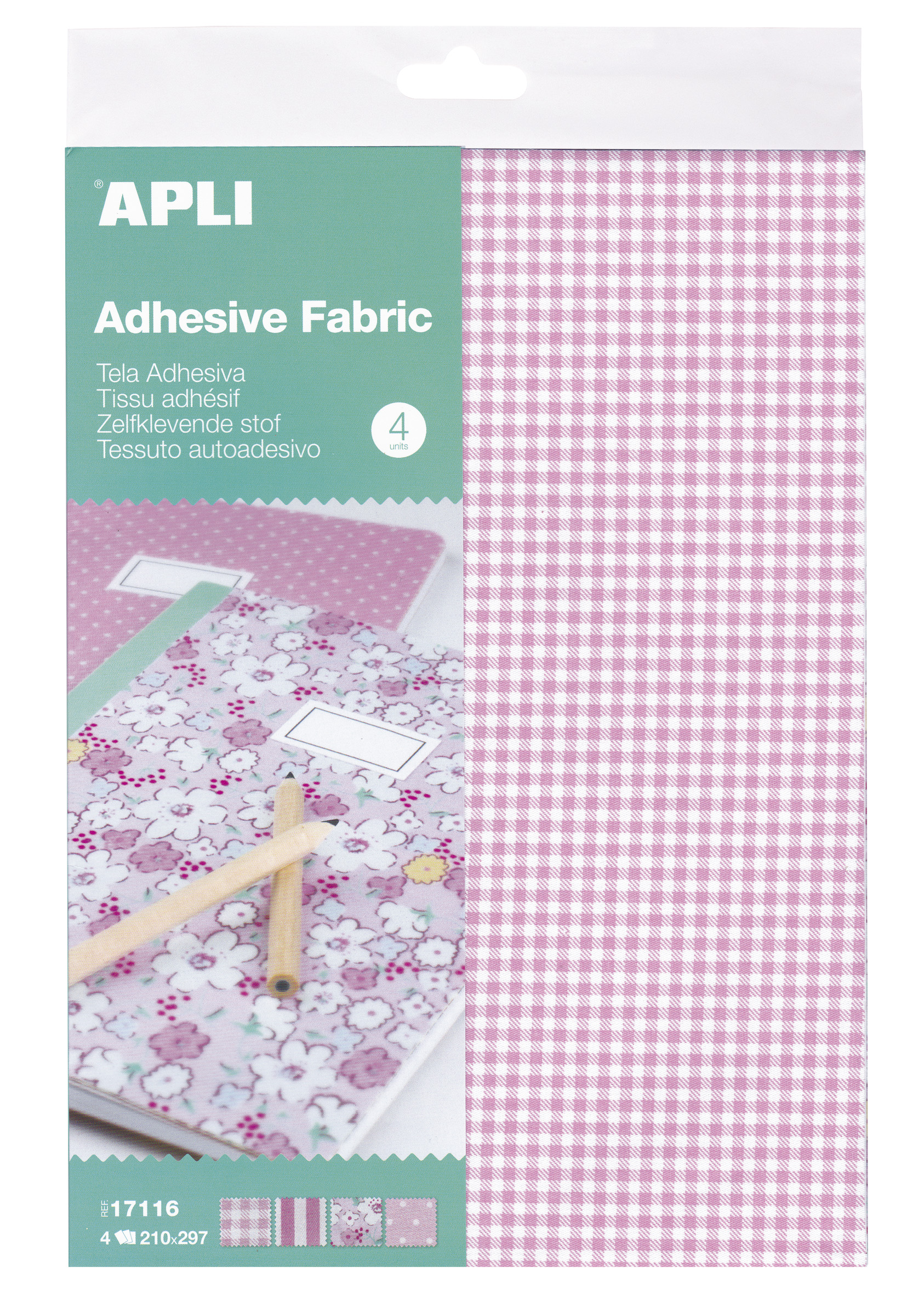 Pochette de tissus adhésifs format A4 (210 x 297 mm). Chaque pochette comporte 4 feuilles (4 designs différents).