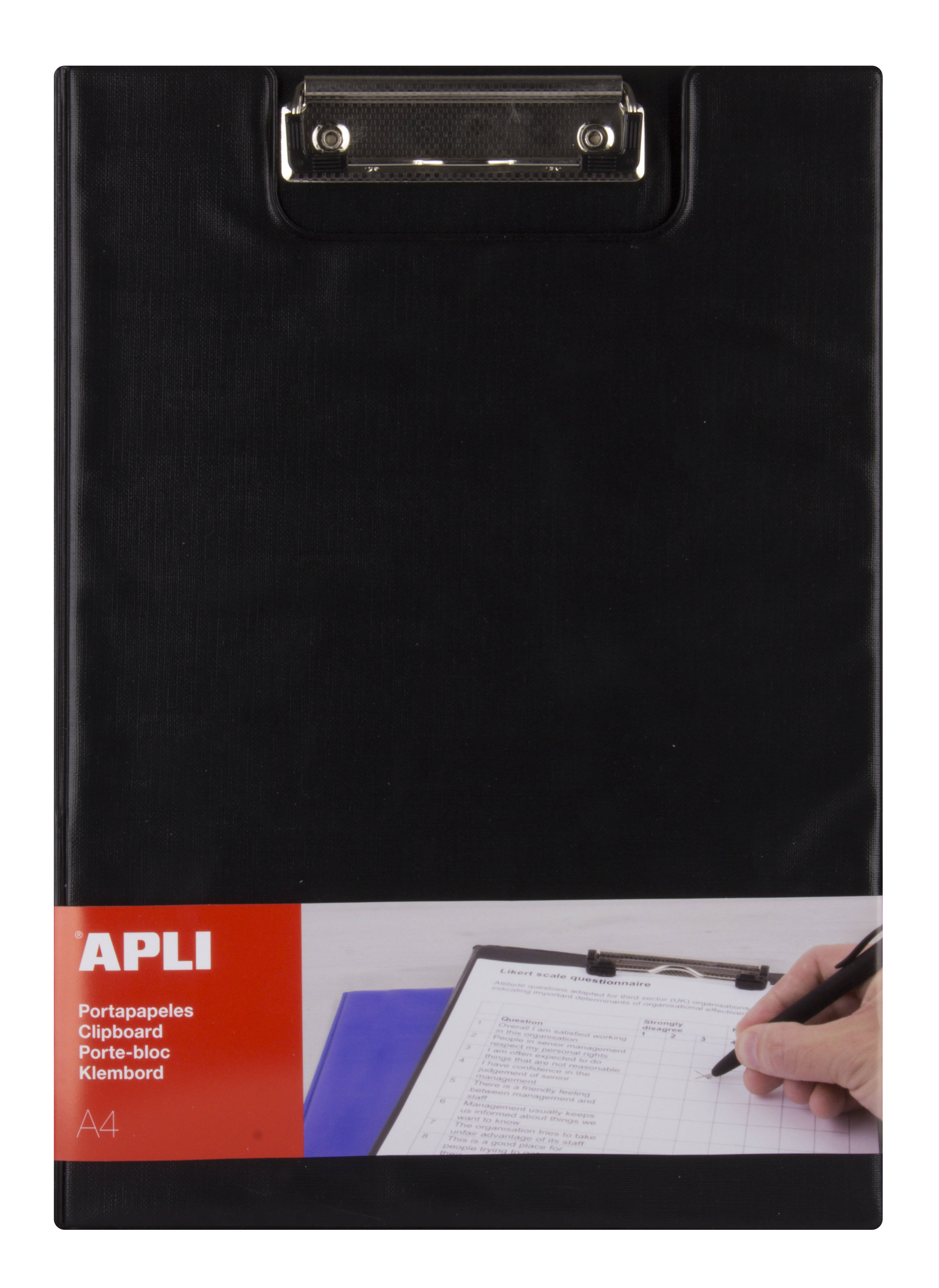Porte-bloc rigide de polypropylène de dimensions 230 x 320 mm avec rabat couleur noire. Convient pour des papiers format A4 et folio. Inclut un clip au niveau de la partie supérieure qui aide à maintenir fermement le papier pour une meilleure écriture et un rabat pour protéger ou cacher les documents.