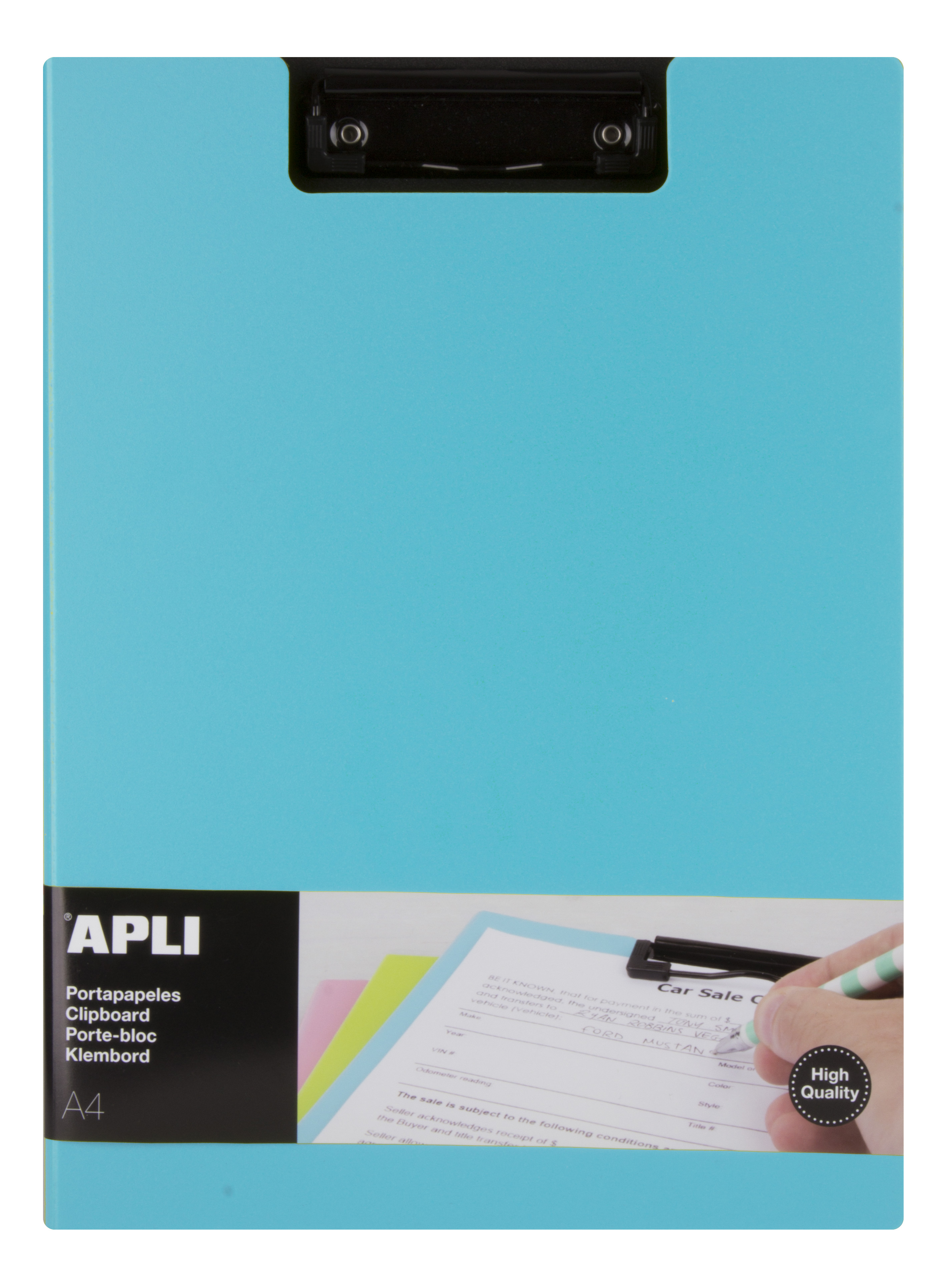 Porte-bloc rigide de polypropylène de dimensions 230 x 320 mm avec rabat couleur bleu clair et finition premium. Convient pour des papiers format A4 et folio. Inclut un clip au niveau de la partie supérieure qui aide à maintenir fermement le papier pour une meilleure écriture et un rabat pour protéger ou cacher les documents.