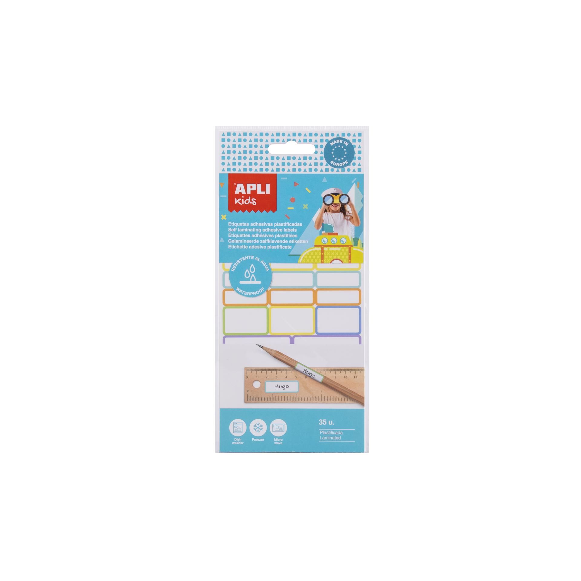Étiquettes plastifiées, aux designs et dimensions assortis, idéales pour marquer facilement et rapidement des livres, crayons, calculatrices....ou tout autre objet. Chaque pochette contient 35 étiquettes. Trois dimensions différentes dans chaque pochette : 46,5x 10 mm(14 étiquettes); 30,5x 19 mm (3 étiquettes) et 30,6x 11 mm (18 étiquettes). Etiquette de haute qualité et durable. Résistante au lave-vaisselle, micro-ondes, congélateur, humidité. Composé d'un film protecteur qui protège et renforce les étiquettes pour les rendre plus résistantes et durables. Facile à utiliser : écrivez avec n'importe quel stylo (de préférence un stylo permanent), appliquez le film protecteur et collez sur la surface souhaitée.