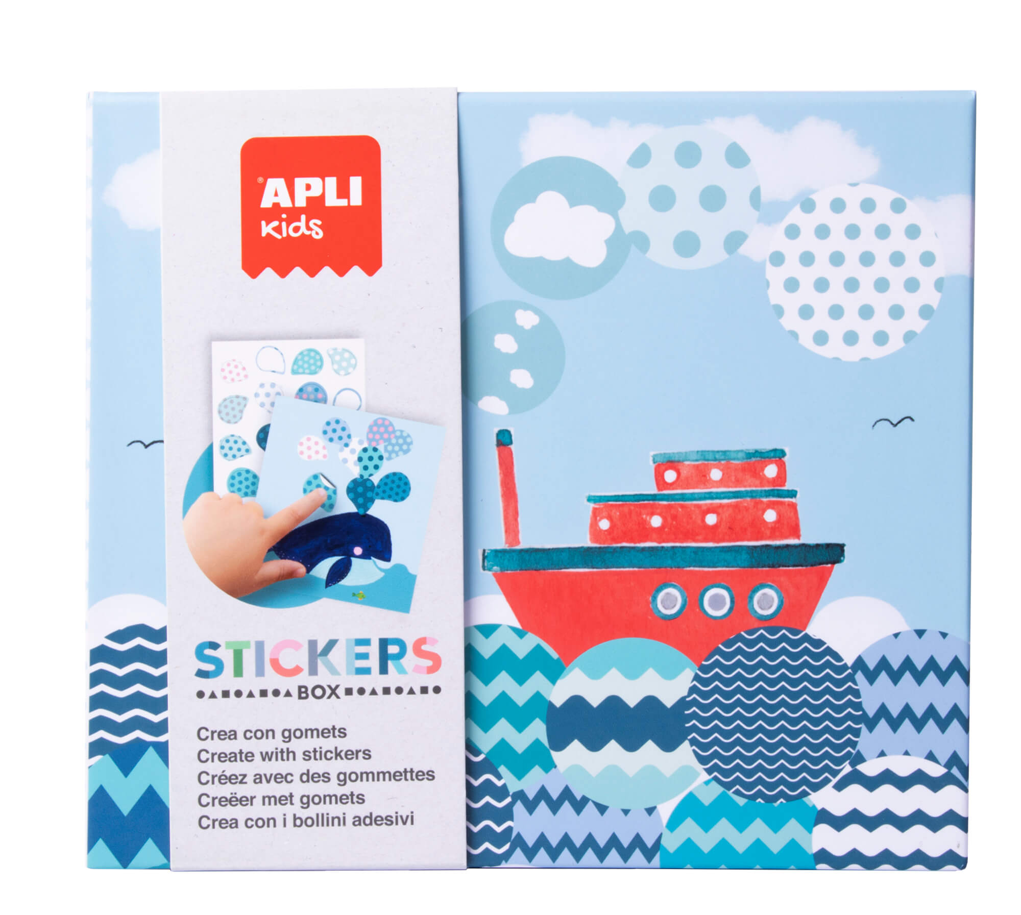 Jeu de gommettes modèle bâteau dans une boîte en carton. L'objectif du jeu est de compléter les dessins à l'aide des différentes gommettes géométriques. L'ensemble comprend : 8 fiches illustrées de 200g avec une finition mate à compléter avec des gommettes, 8 feuilles de gommettes géométriques enlevables de couleurs différentes et une notice avec des exemples de couleurs. Les gommettes enlevables permettent à l'enfant de corriger en cas d'erreur .Ce jeu, développé avec le soutien de pédagogues, une grande valeur didactique contient : il stimule la motricité fine, développe la pensée mathématique, aide à la concentration, travaille sur le développement de l'œil manuel et privilégier l'orientation spatiale. Produit avec une présentation originale et un design attrayant : boîte en carton au design exclusif APLI Kids.