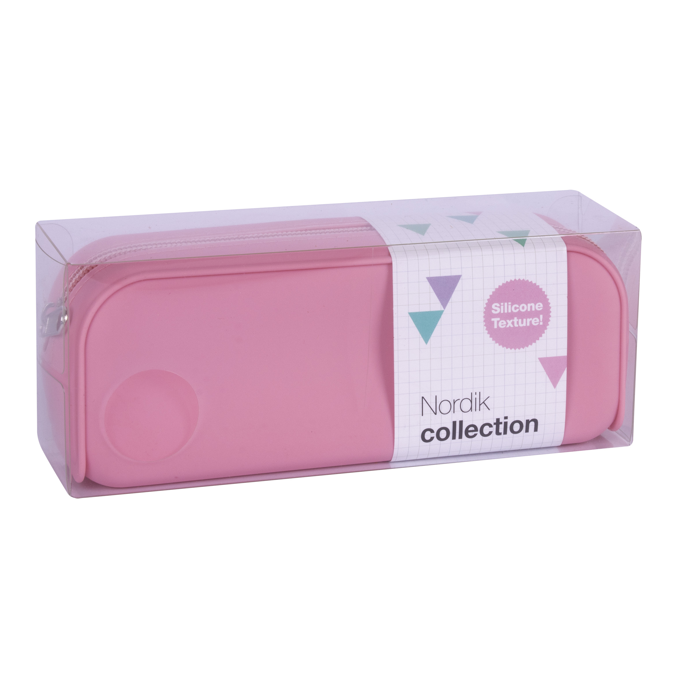 Trousse en silicone rose de la gamme Nordik Collection. Blister PVC individuel et pegboardable. Silicone de haute qualité avec une finition douce au toucher.