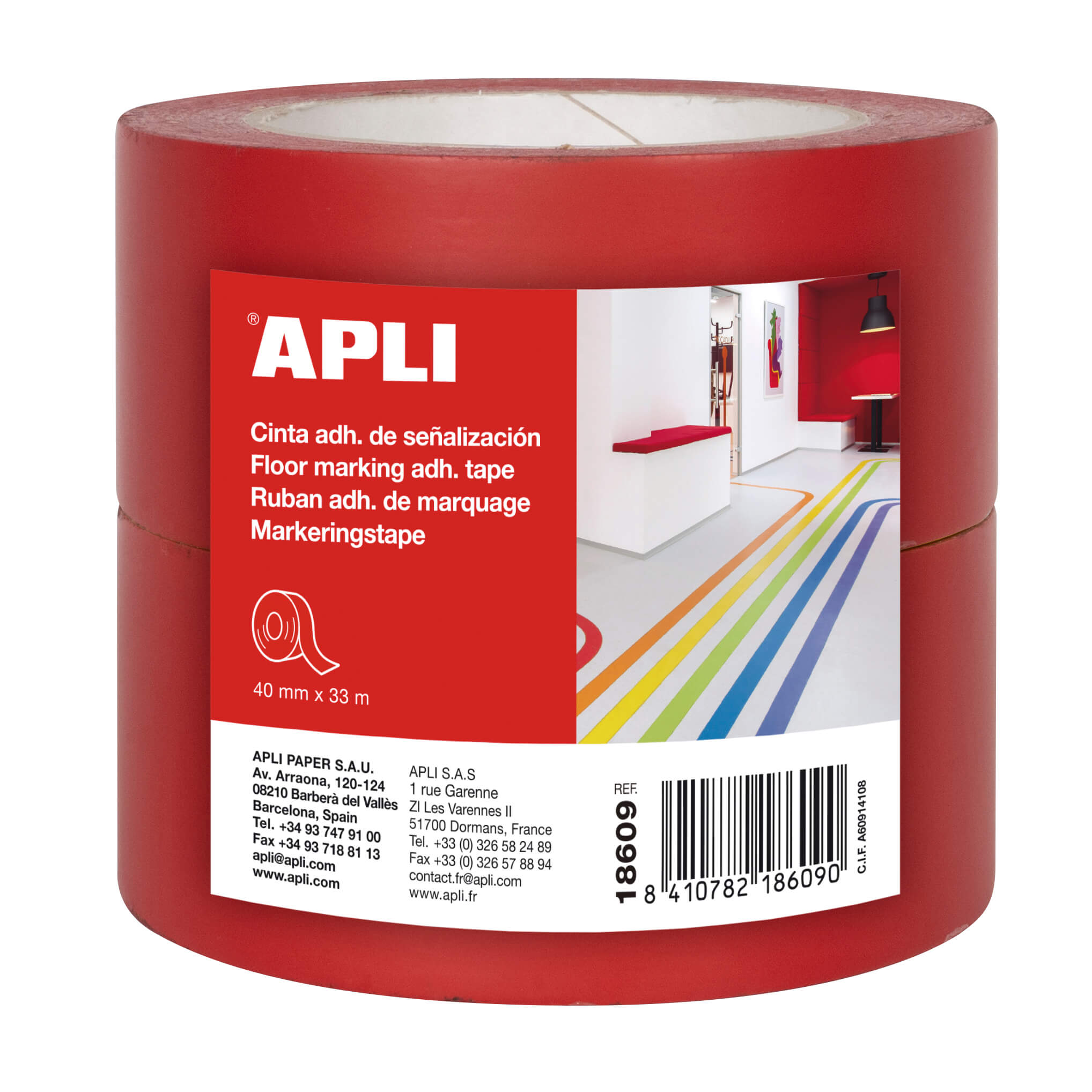 Ruban adhésif de signalisation rouge 40 mm x 33 m x 2 rouleaux
