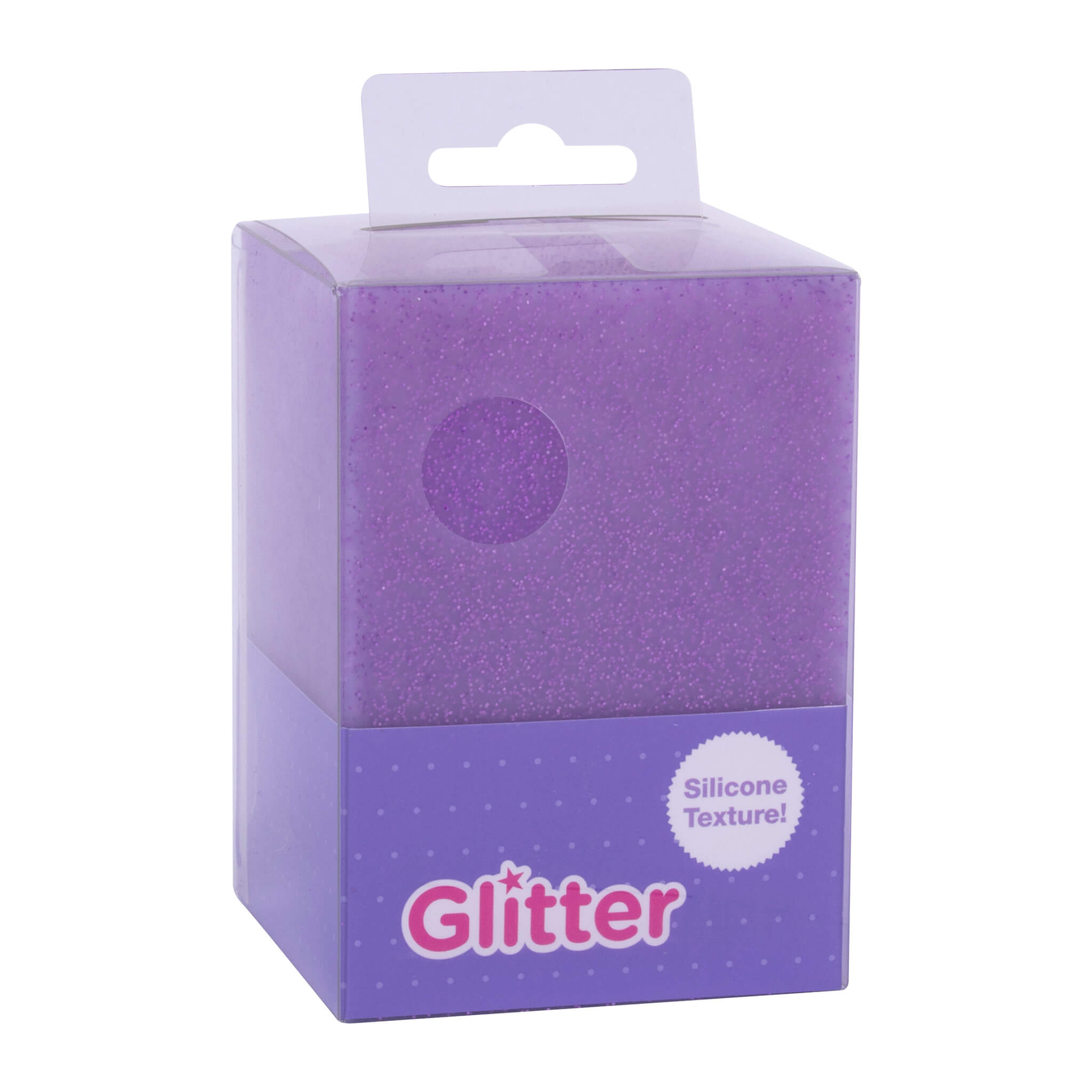 Pot à crayons en silicone de la gamme Glitter Collection en violet avec une finition pailletée. Dimensions 70 x 70 x 95 mm. Silicone au toucher doux et agréable en violet avec des étincelles lumineuses qui apporte un design unique à tout espace de travail. Résistant, flexible et souple. Résistant à l'eau et très facile à nettoyer.