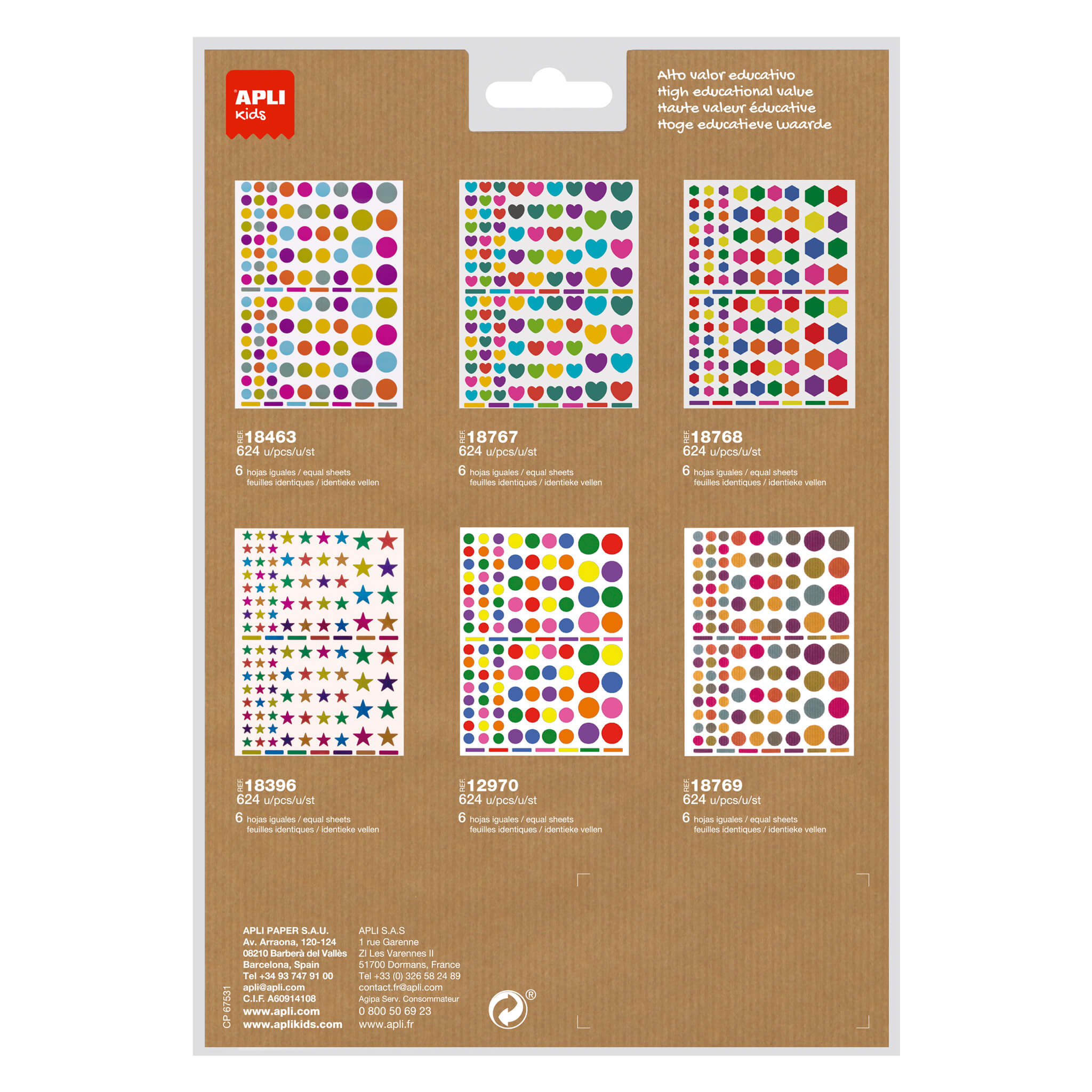 Un produit indispensable dans toute maison et école. Avant d'apprendre à manipuler le crayon ou les peintures, avec ces autocollants, les enfants peuvent se lancer dans le monde des couleurs et des formes.