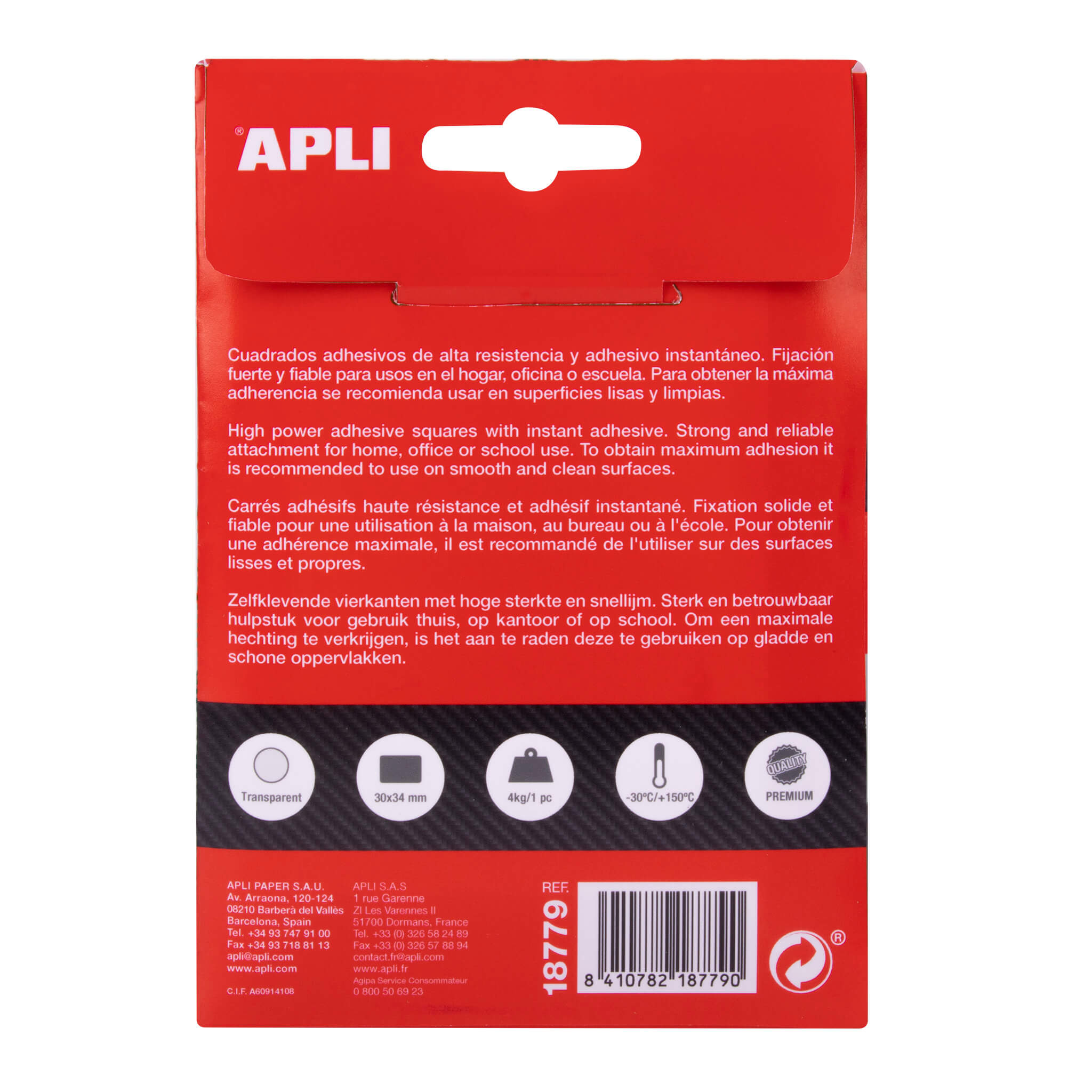 Rectangles double-face adhésif fort APLI Power Dots transparentes de qualité PREMIUM.