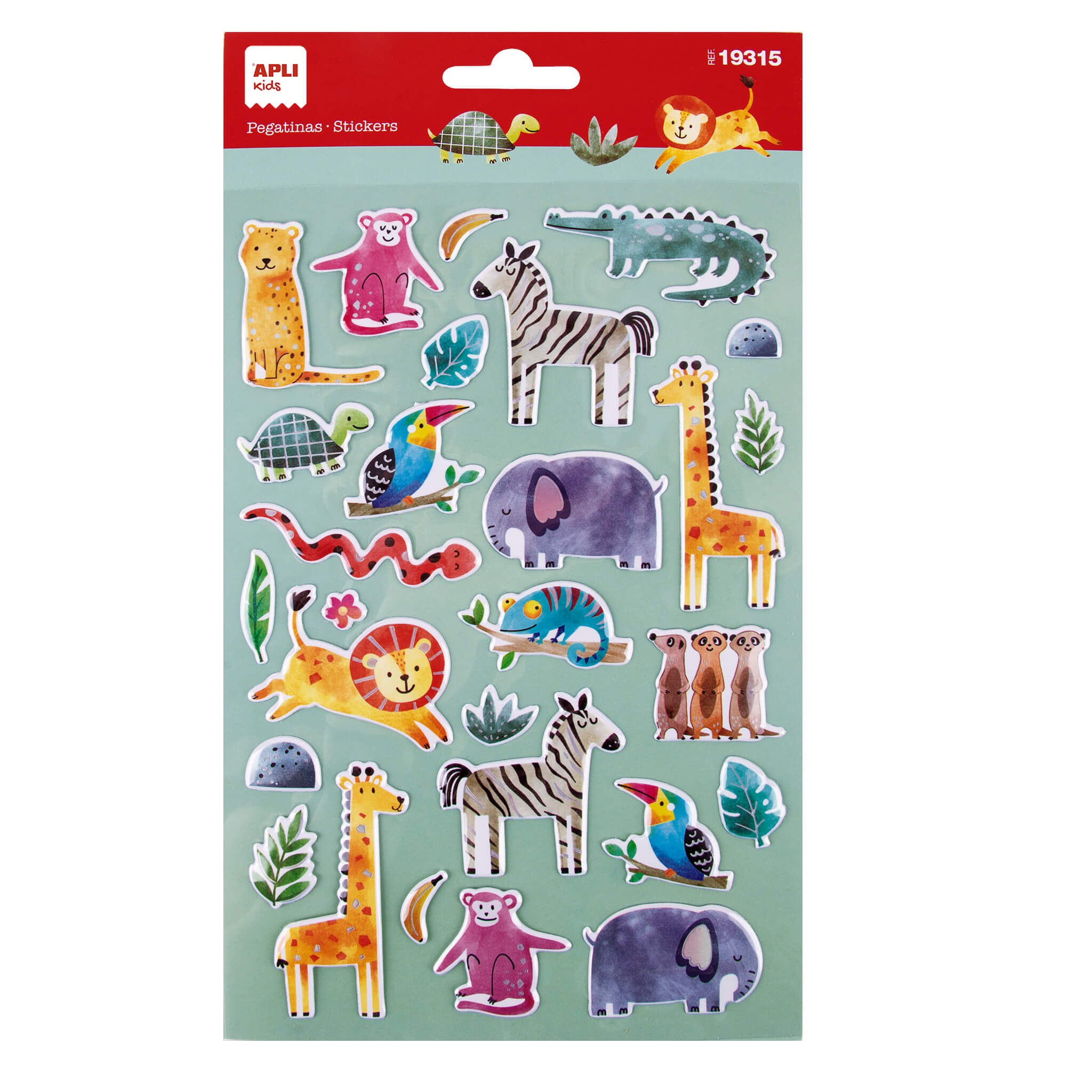 Pochette de stickers sur le thème animaux sauvages. Chaque pochette contient 1 feuille de 28 stickers en relief avec des détails métalliques.