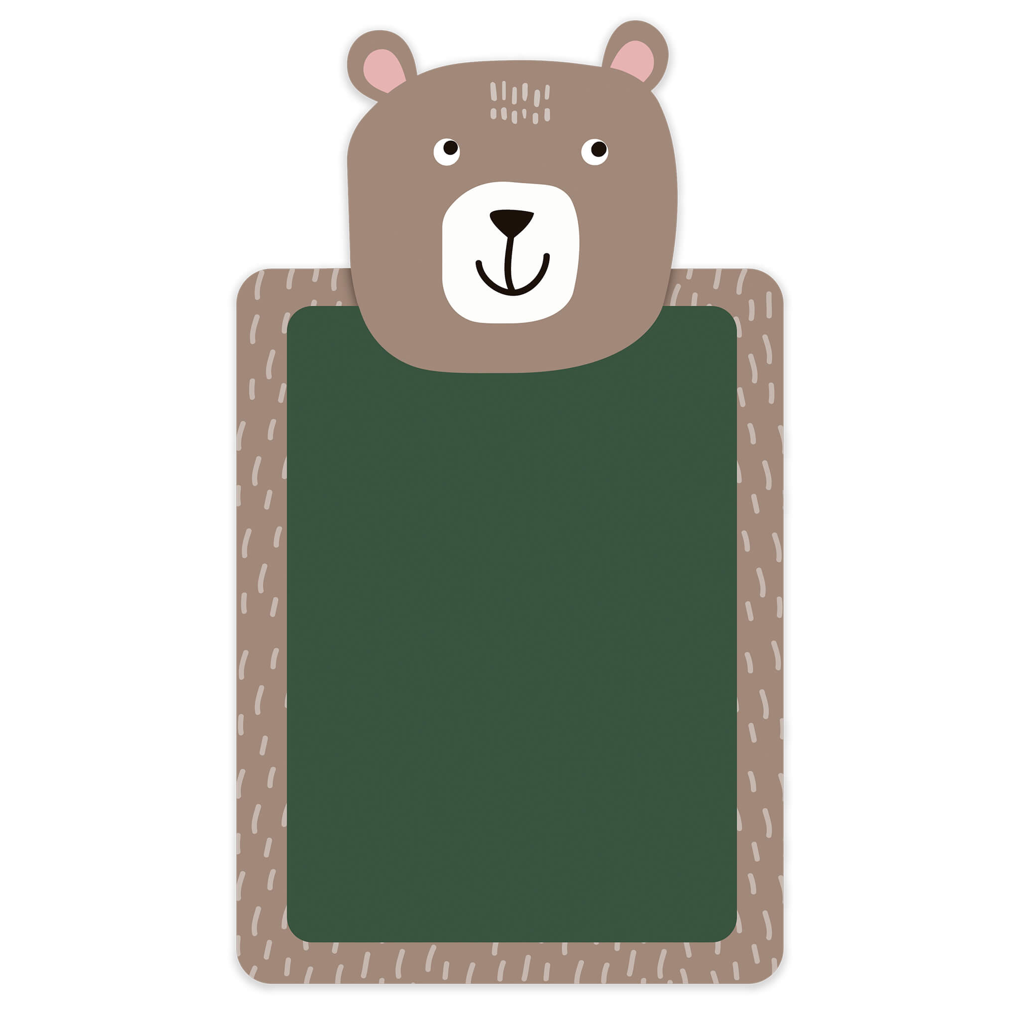 Présentoir d'ardoises noires en forme d'animaux amusants avec craies. Chaque présentoir comprend 9 ardoises noires de 260 x 155 x 15 mm : 3 kits d'ardoises noires avec un motif d'ours, de panda ou de grenouille. Chaque ardoise comprend 1 boîte avec 3 craies de couleur et 1 effaçette.