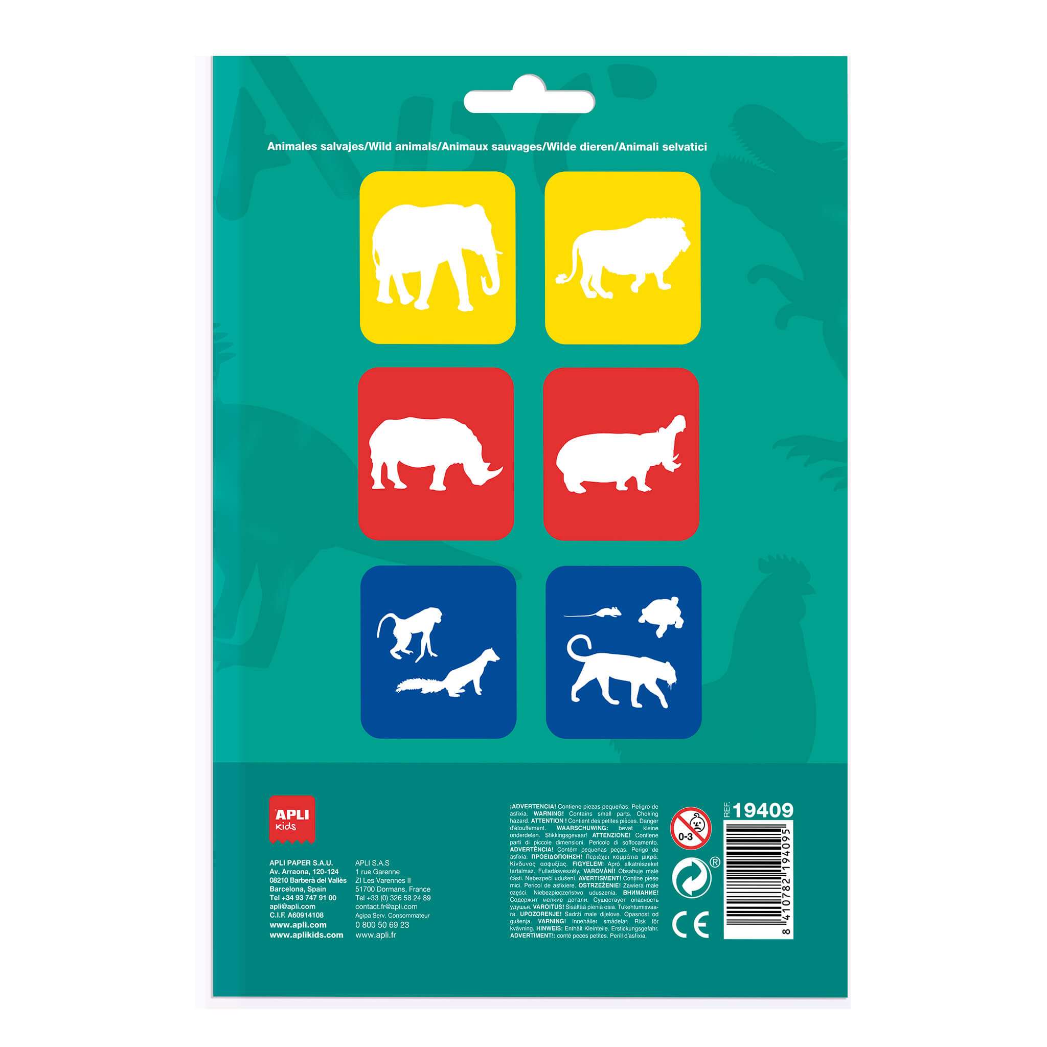 Sachet de pochoirs en forme d'animaux de la savane. Chaque sachet contient 6 pochoirs avec 9 formes d'animaux. Les pochoirs sont fabriqués en polypropylène souple, un matériau durable et lavable. Les modèles vous permettent de dessiner des contours intérieurs et extérieurs ; mais également de peindre ou de tamponner avec des éponges. La forme extérieure de chaque modèle permet de tracer des lignes intérieures et extérieures, de sorte que toutes les parties des pochoirs peuvent être utilisées . Ces pochoirs améliorent la motricité fine de l'enfant.