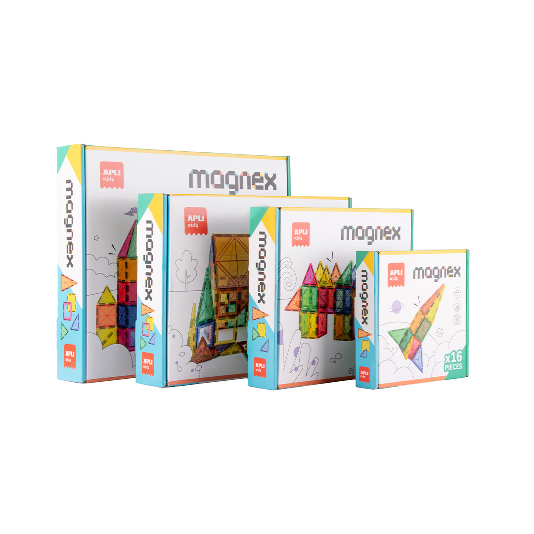 Le coffret Magnex de 16 pièces est idéal pour initier les plus petits à la construction magnétique. Le jeu comprend des pièces magnétiques colorées de formes géométriques qui s'assemblent facilement, leur permettant d'explorer des concepts tels que la forme, l'équilibre et l'espace dès leur plus jeune âge.