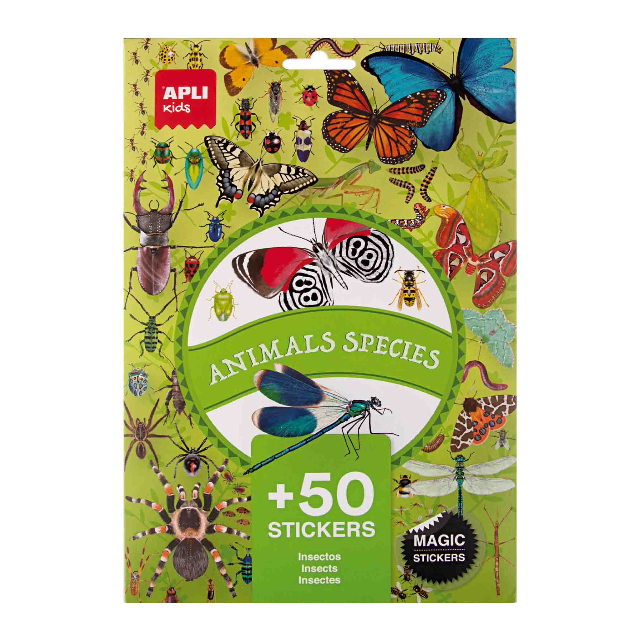 Pochette de 50 stickers sur le thème des insectes pour permettre aux enfants de découvrir le monde animal. La pochette contient 5 feuilles avec 50 stickers enlevables. Vous pouvez coller autant de fois que vous le souhaitez ! Jouer avec des stickers est une activité de base qui permet aux enfants de développer de fines capacités psychomotrices et de travailler de multiples capacités cognitives.