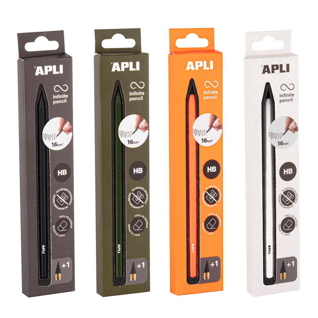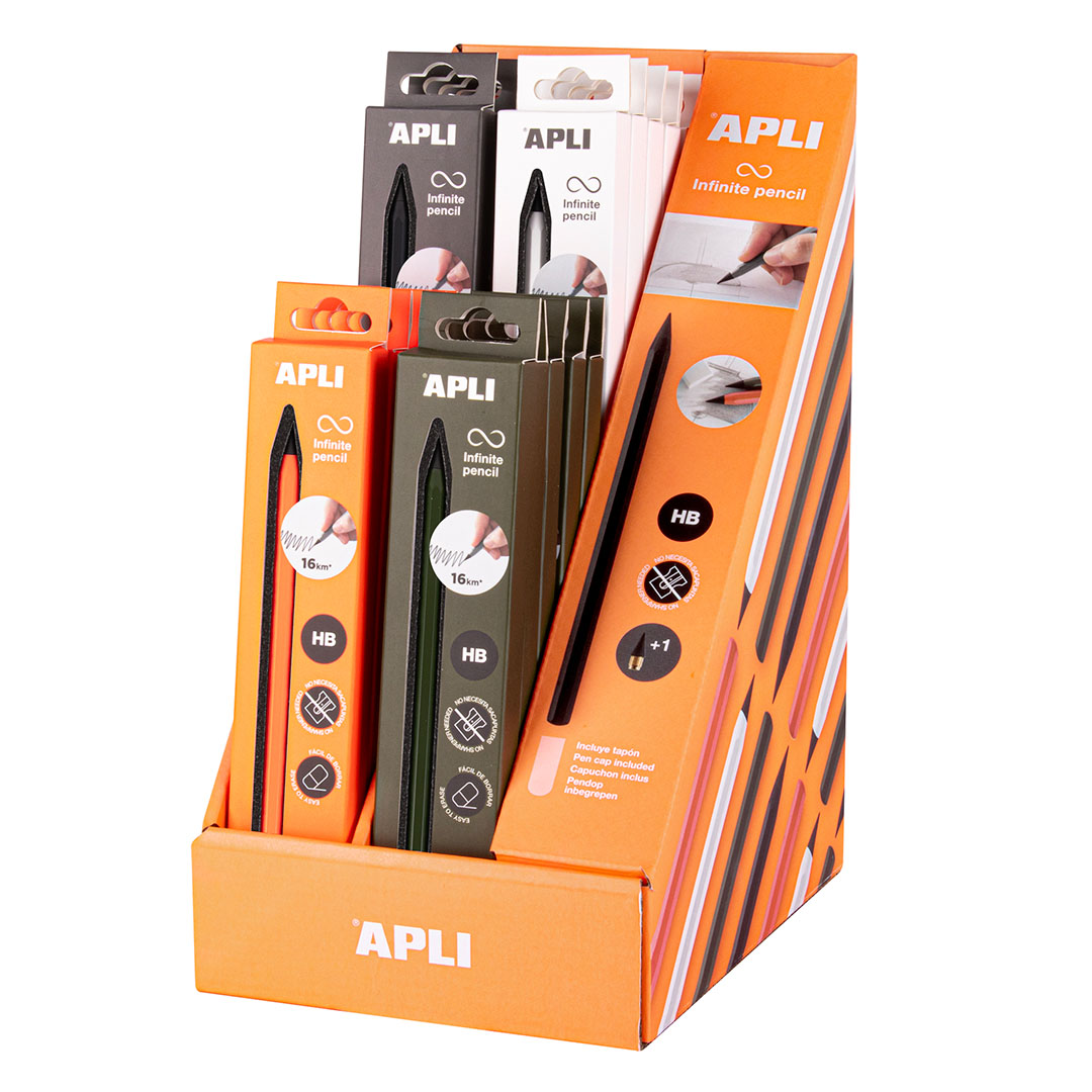 Présentoir de 20 blisters de crayons infinis qui vous permettent d'écrire sans vous arrêter. Grâce à sa mine légèrement abrasive et résistante, le crayon innovant Infini vous permettra d'écrire jusqu'à 16 km sans taillage, vous offrant ainsi une concentration optimale lors de vos activités d'écriture et de dessin. Le présentoir comprend 20 blisters de crayons de 4 couleurs différentes : beige, vert, bleu, rose. Chaque paquet contient 1 crayon Infini, 1 mine de crayon HB et 1 capuchon de protection.