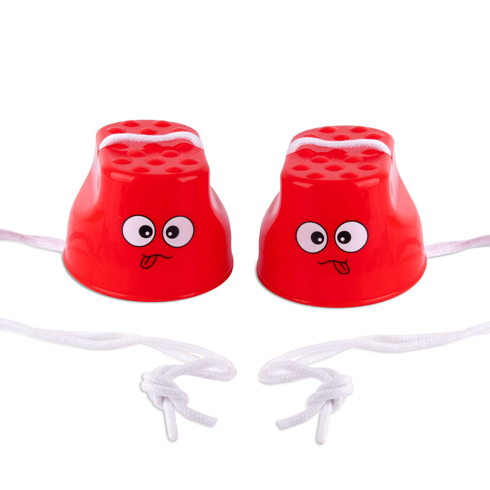 Jeu d'échasses avec cordon de la collection Party Time. Le jeu consiste à marcher sur des échasses en essayant de garder l'équilibre. Il est utile dans certains sports et activités physiques pour entraîner l'équilibre et la coordination.