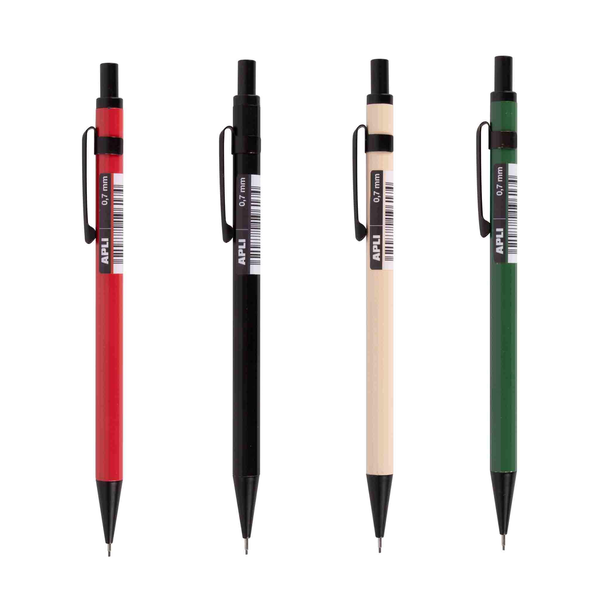 Présentoir avec 25 porte-mines métalliques hexagonaux de 0,7 mm. Modèles élégants en métal avec mine de 0,7 mm, format hexagonal et mécanisme d'avancement fluide, pour une expérience d'écriture unique.