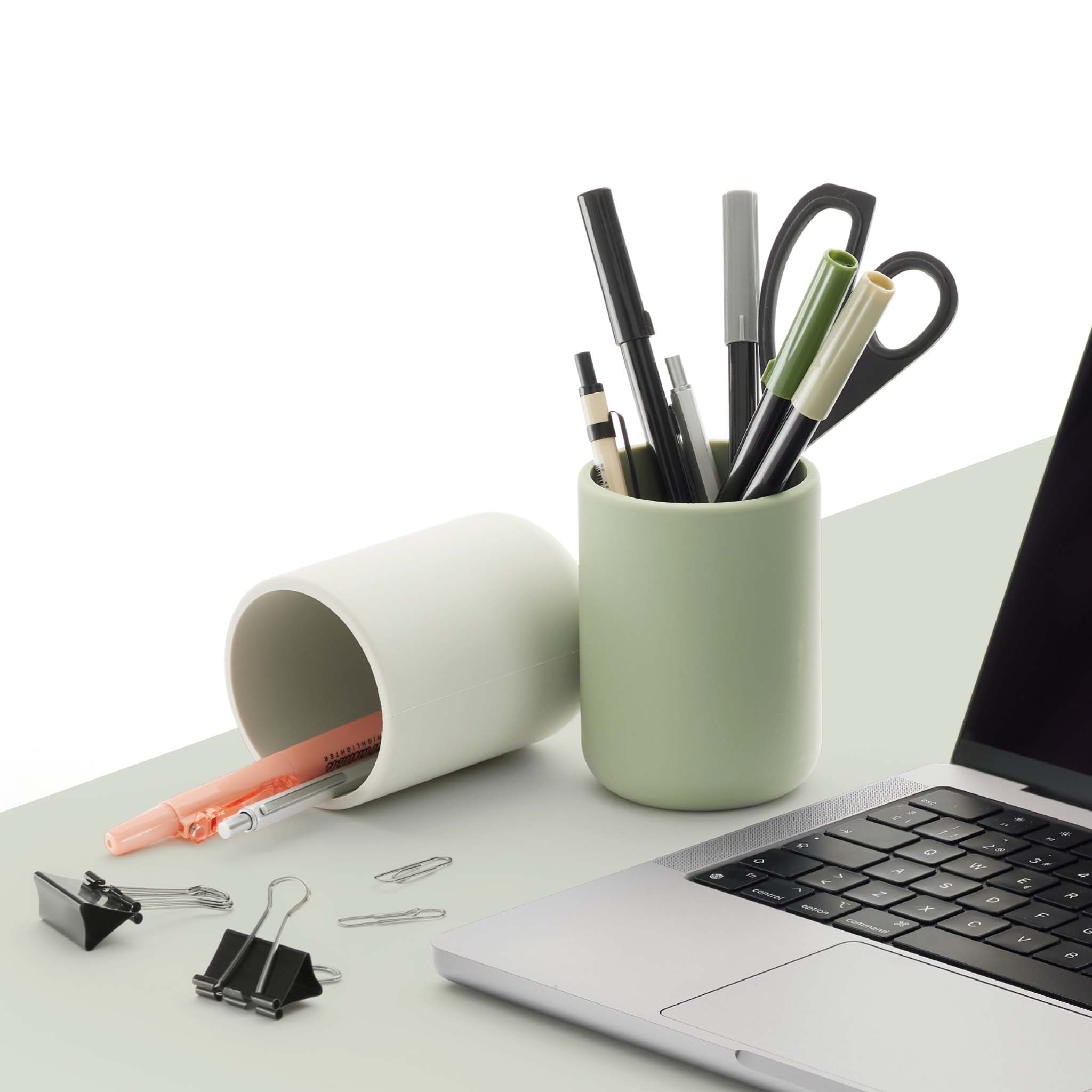 Présentoir de pot à crayons de forme ronde de la collection Up North fabriqué en silicone haute densité pour apporter à la fois ordre et élégance à votre espace de travail.