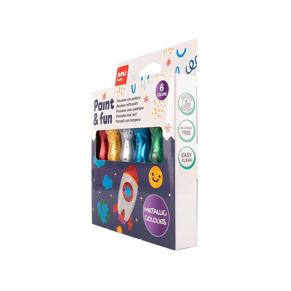 Peinture en tube avec pinceau aux couleurs métallisées 6u.