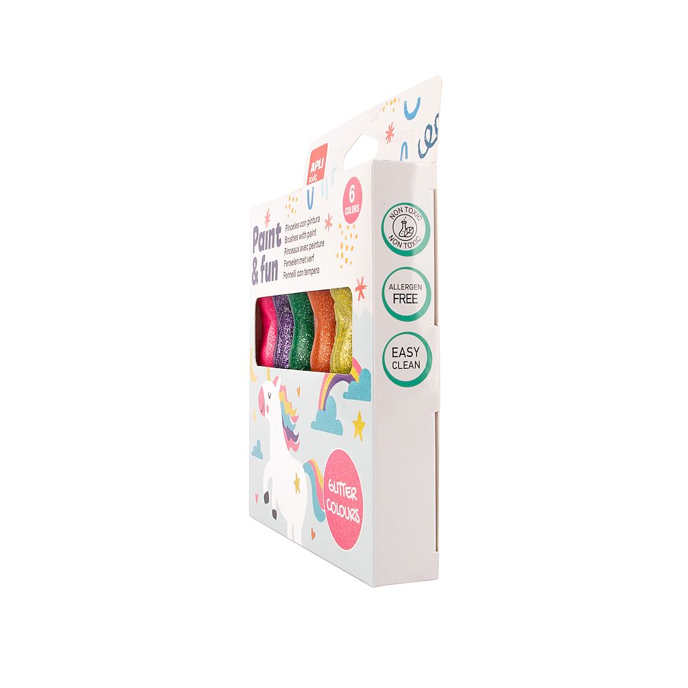 Peinture en tube avec pinceau aux couleurs pailletées 6u.