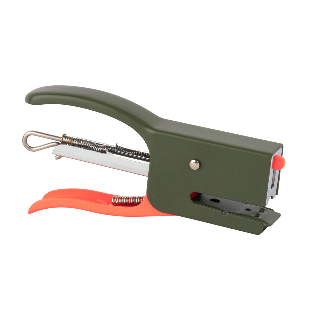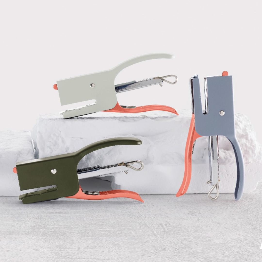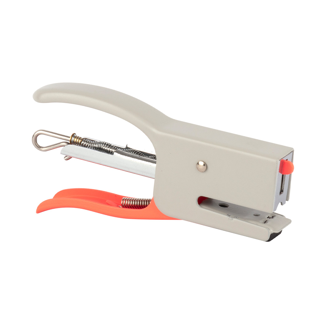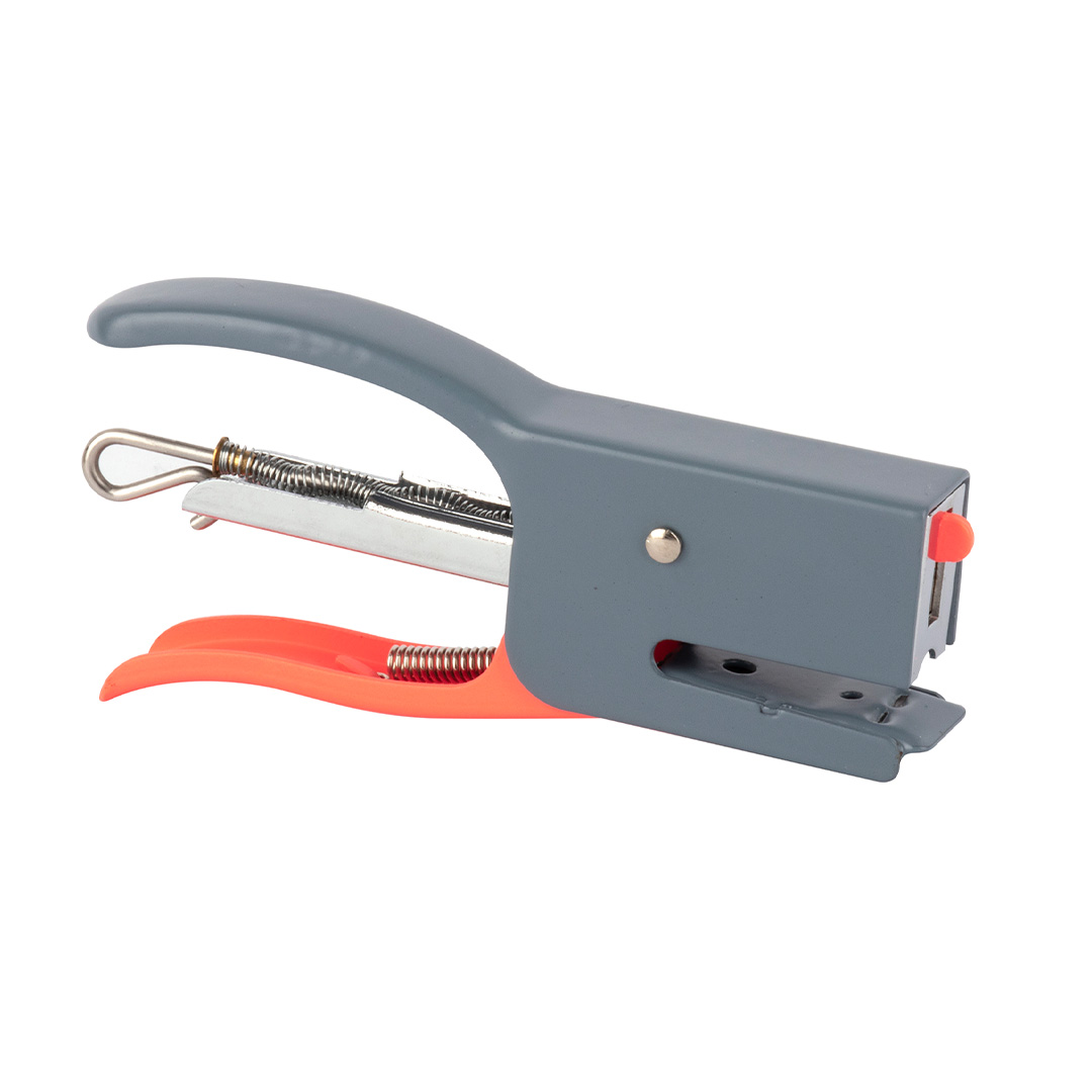 Le présentoir comprend 16 agrafeuses comprenant chacune une recharge de 50 agrafes (N° 10) avec une capacité d'agrafage de 12 feuilles. Disponible en 4 couleurs assorties : gris, bleu, kaki et orange. Les agrafeuses ont un détail orange fluorescent, qui ajoute de l'énergie et de l'originalité.