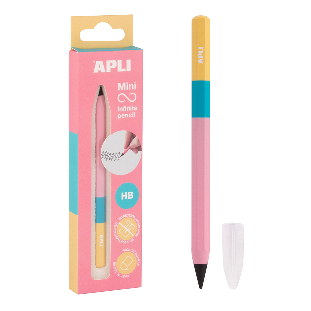 Présentoir de mini crayons tricolores Infini conçus dans une version mini avec la même capacité d'écriture jusqu'à 16 km sans avoir besoin de le tailler, mais dans un format plus compact et facile à transporter.