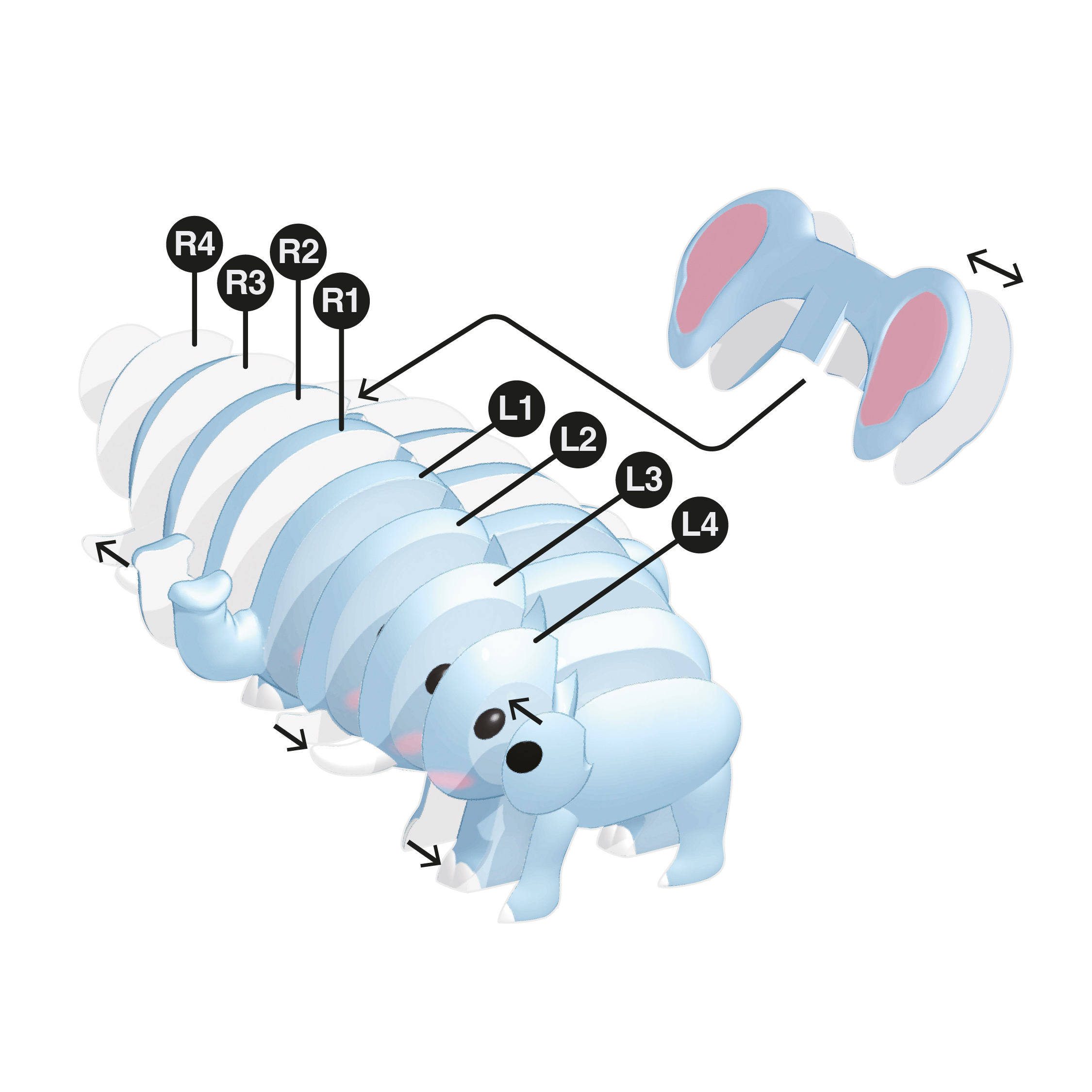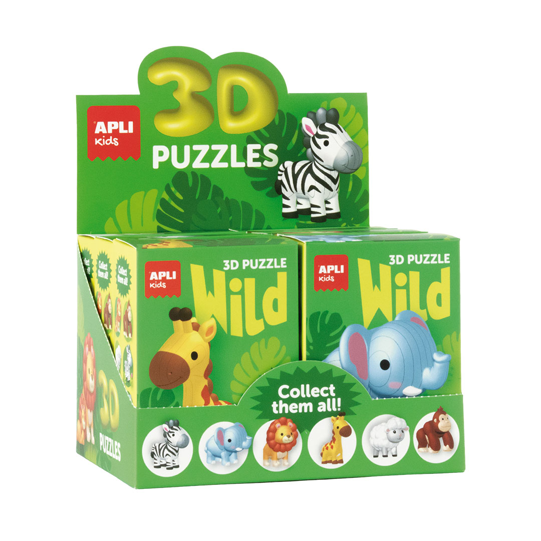 Ce coffret comprend 6 animaux différents à assembler : éléphant, lion, girafe, gorille, zèbre et mouton. Chaque pièce du puzzle est numérotée et doit être placée dans une séquence numérique. Ainsi, les enfants peuvent construire intuitivement des figures en trois dimensions et obtenir des résultats étonnants, sans ciseaux ni colle.