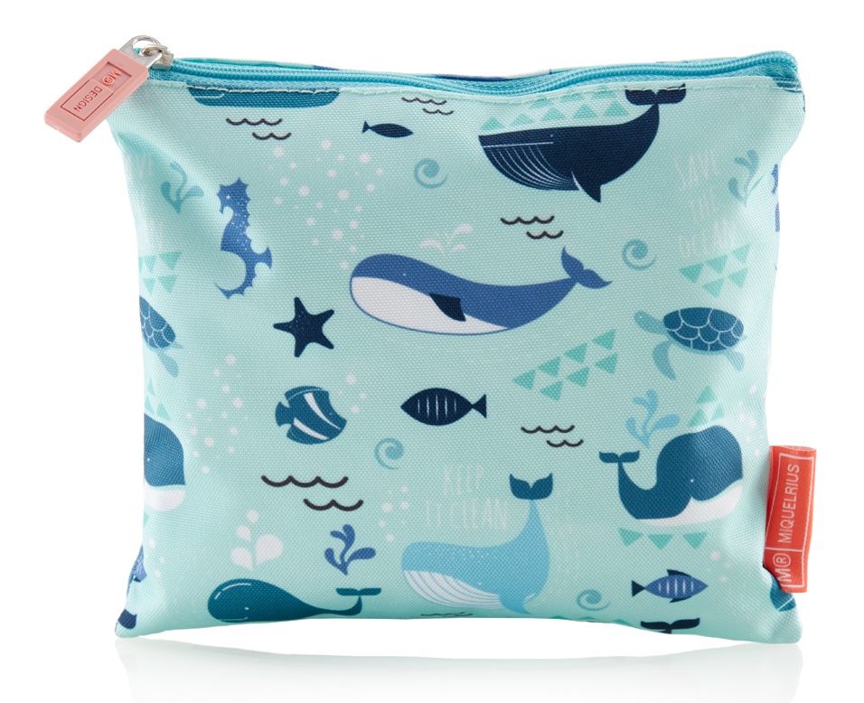 Sac à goûter Save the Ocean Ref. MR19681 Sac à goûter avec intérieur imperméable, fermeture éclair et porte-nom à l'arrière. Traits Mesures du produit 180 x 160 x 10 mm Couleur Bleu ciel Presentation format Quantité 1 Format de vente Sachet Unité de vente 1
