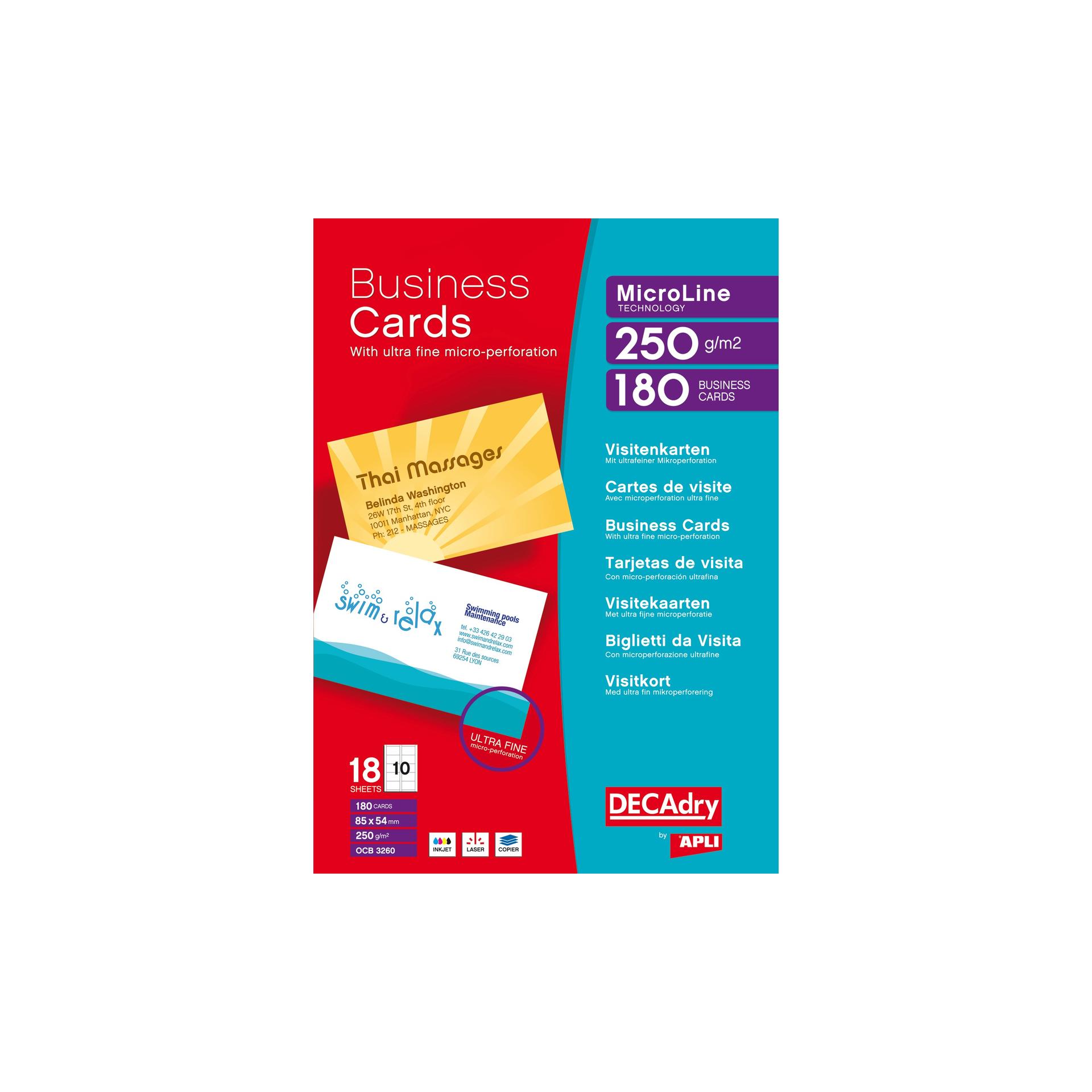 Pochette 180 cartes de visite blanches MicroLine - 250g
