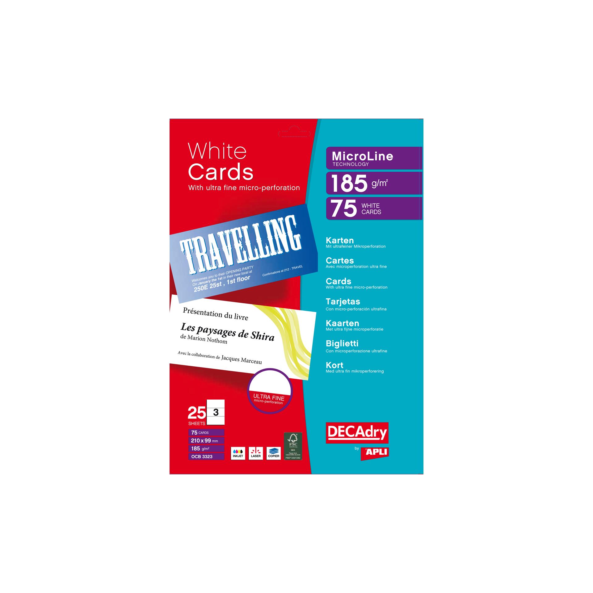 Pochette 75 cartes de visite blanches MicroLine - 185g