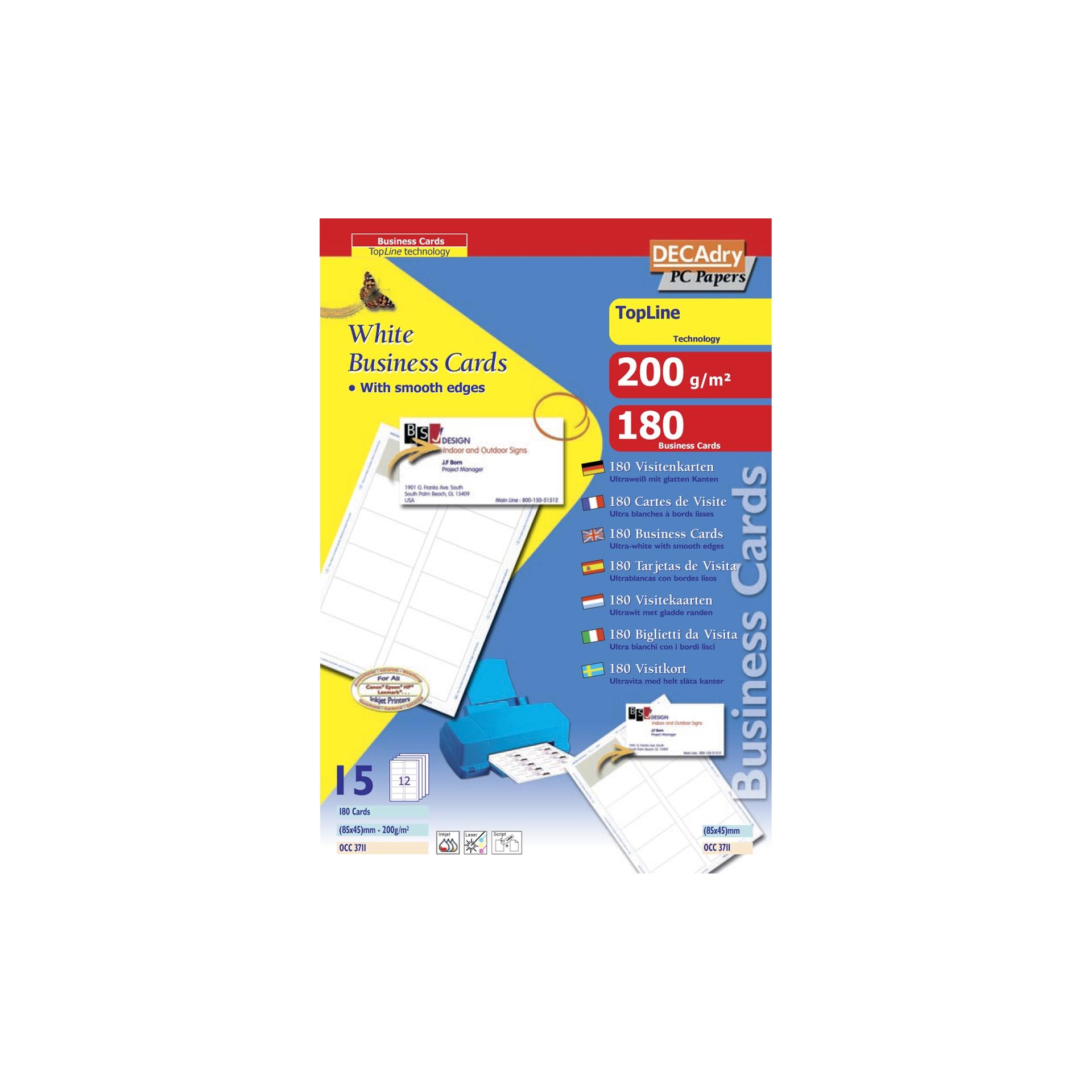 Cartes de visite blanches TopLine 200g 85x 45 mm 15 feuilles