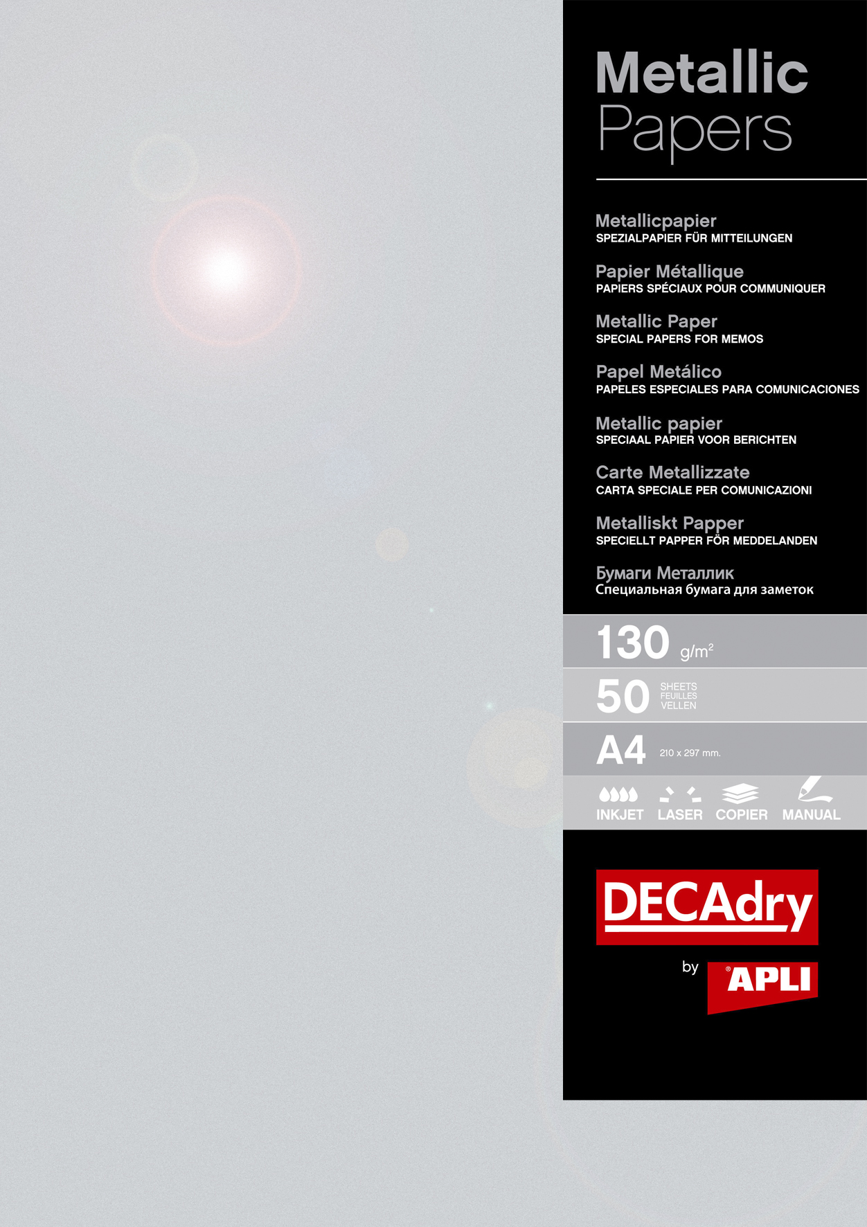 Papier métallisé couleur argent format A4. Papier de 130 g/m². Chaque paquet contient 50 feuilles.