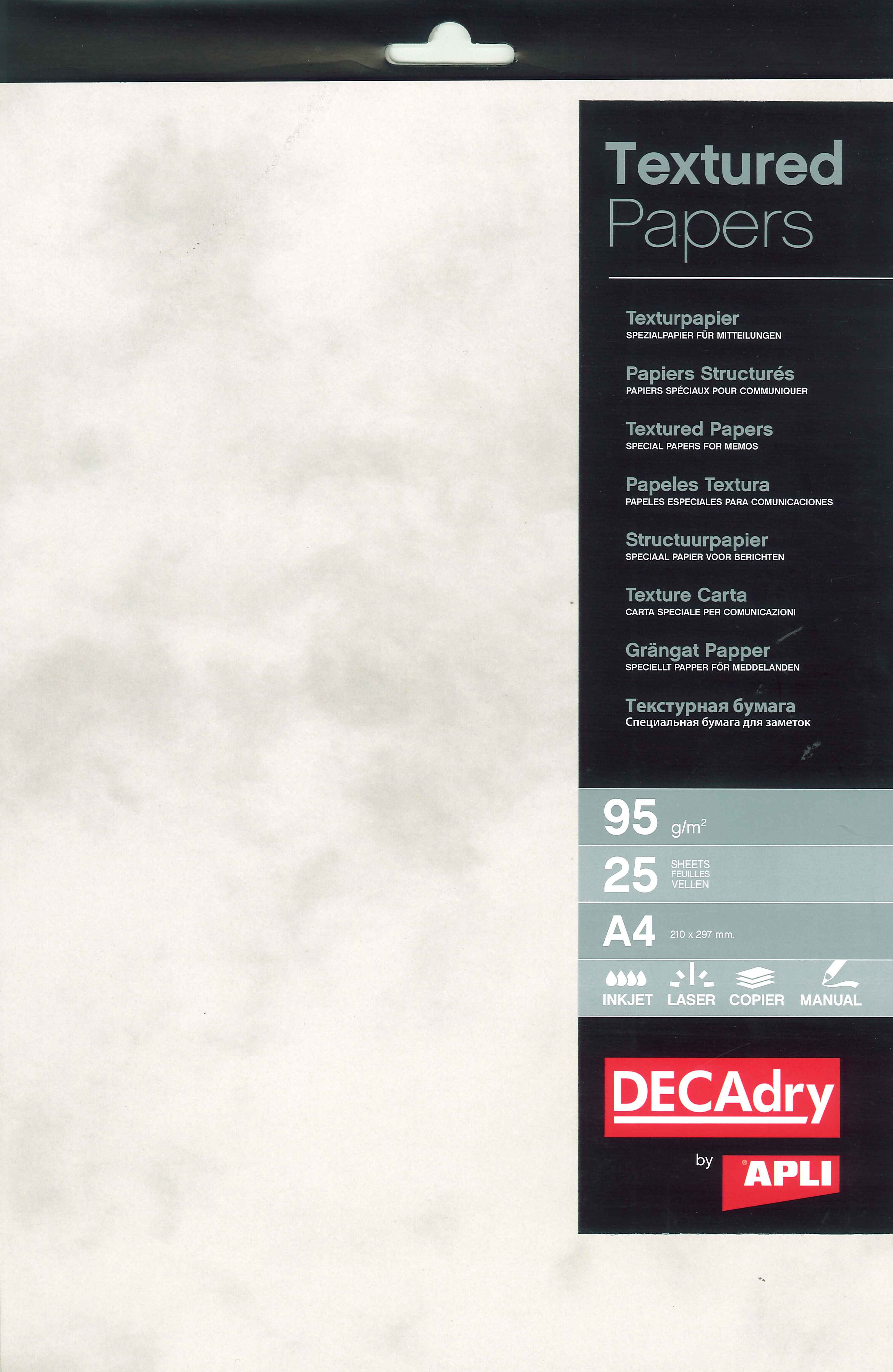 Papier texture couleur marbre gris format A4. Papier de 95 g/m². Chaque paquet contient 25 feuilles.